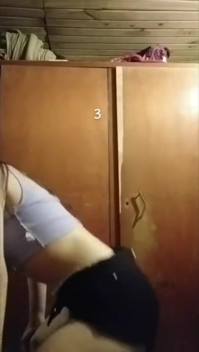 Spill out natural boobs from short student uniform top, wedgie thong leotard, hair...