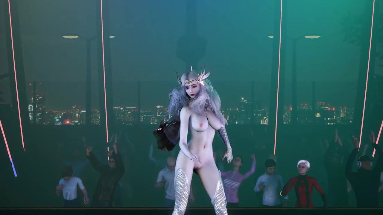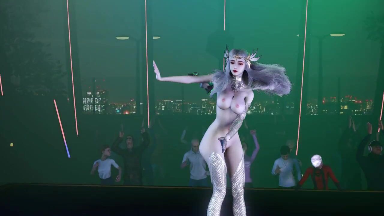 3D big boobs slut Asian cosplay model public naked
