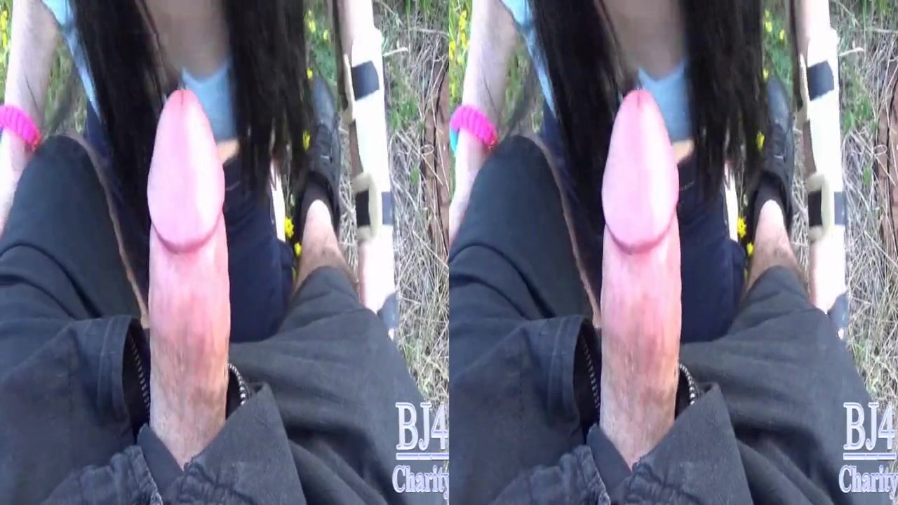3D POV blowjob in park. Perfect cocksucker without bra take mouthful.
