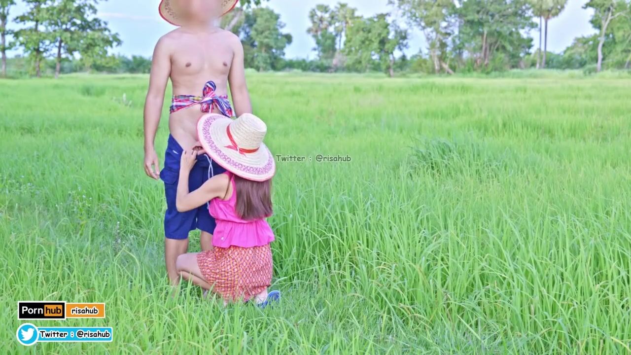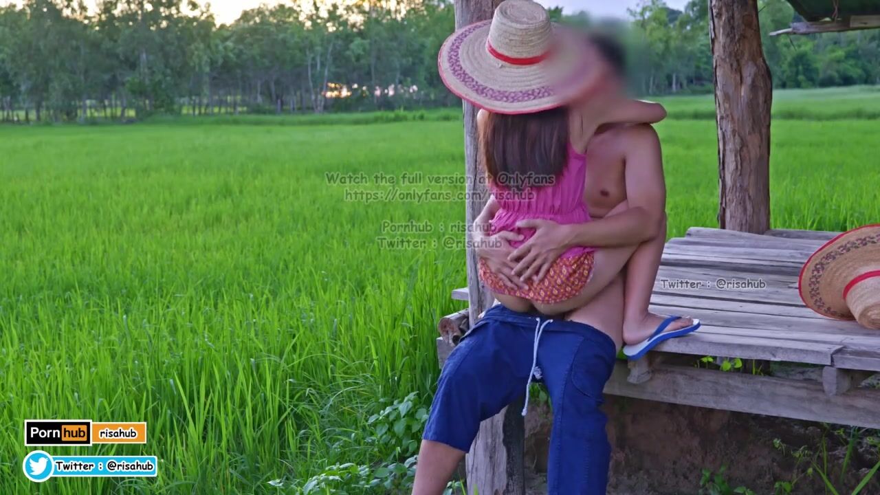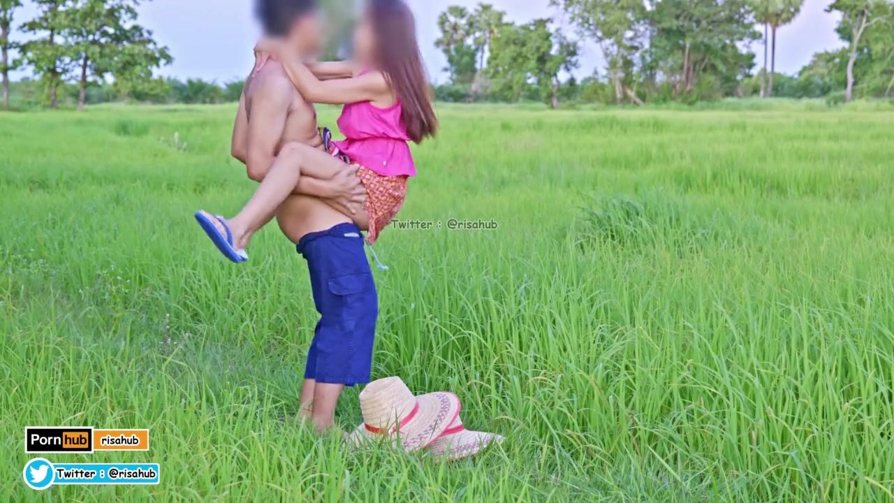 4K Thai Version Cut, Local farmers Thai have sex in the green fields and cums on her back.