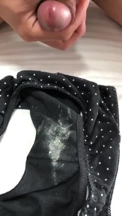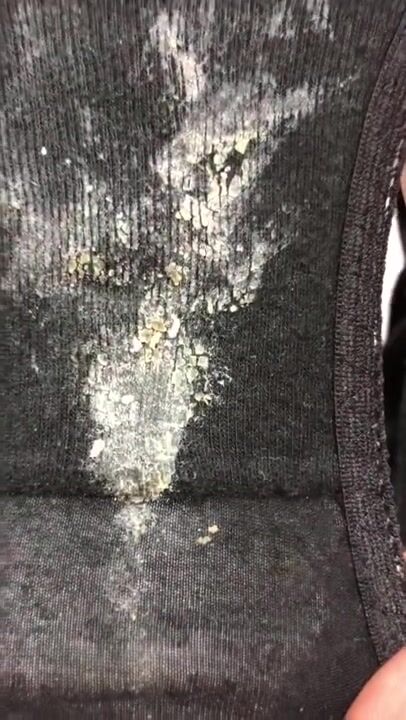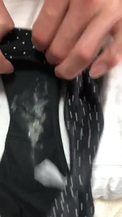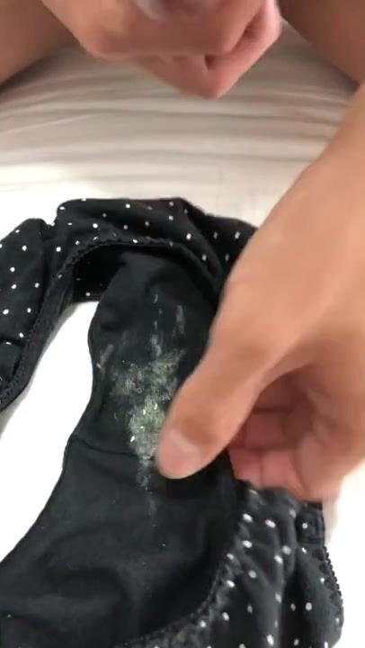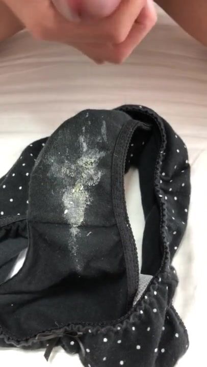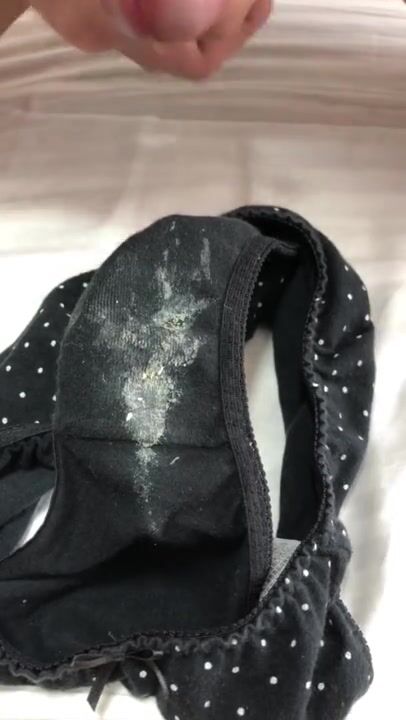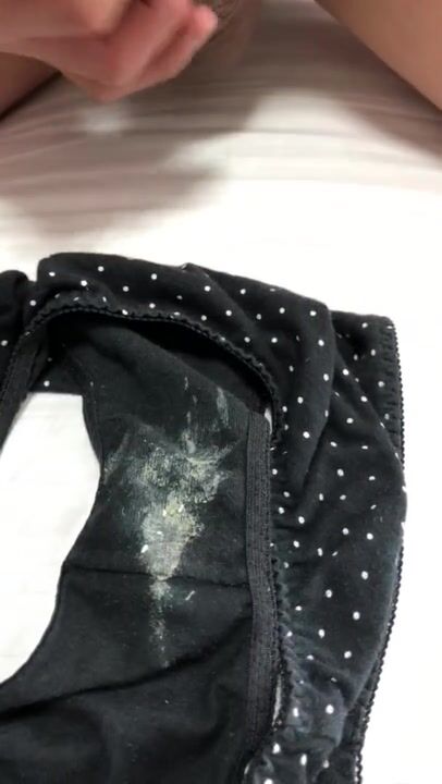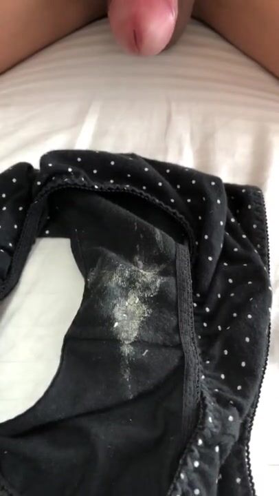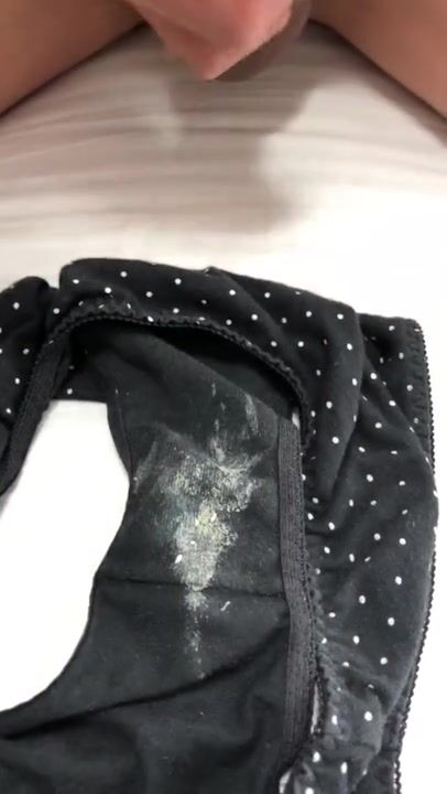 おりもので汚れた彼女のパンツに濃厚精子をぶっかけ射精