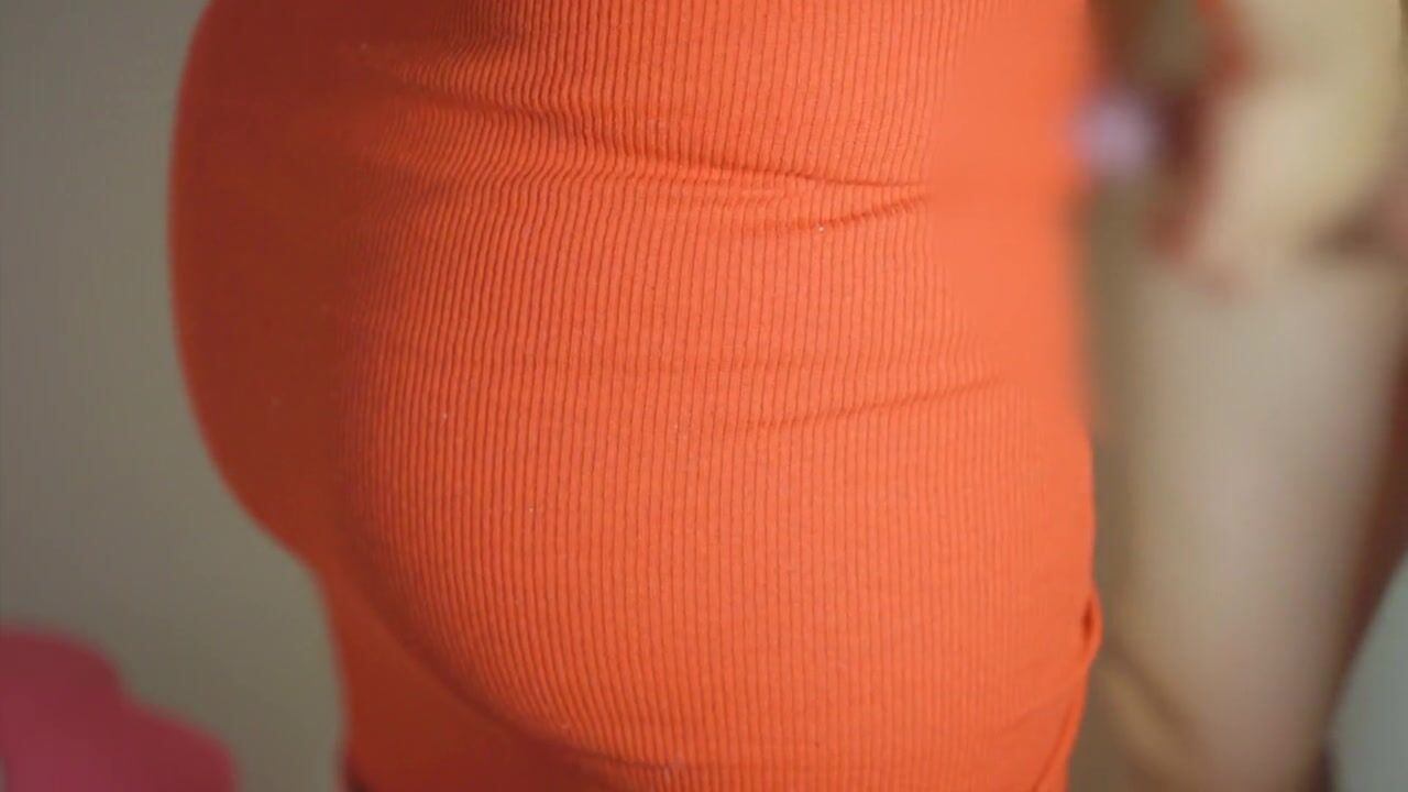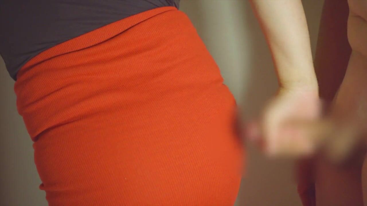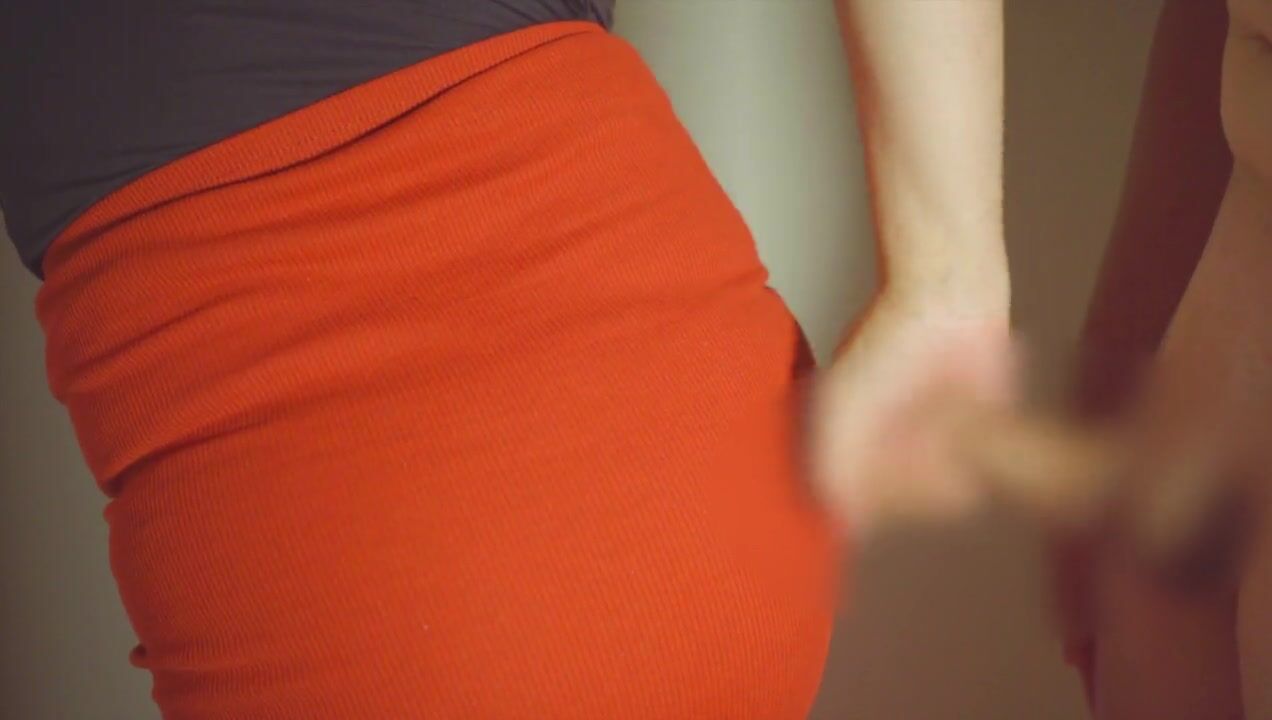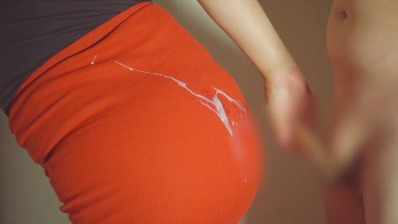 彼女の赤いタイトスカートにぶっかけ