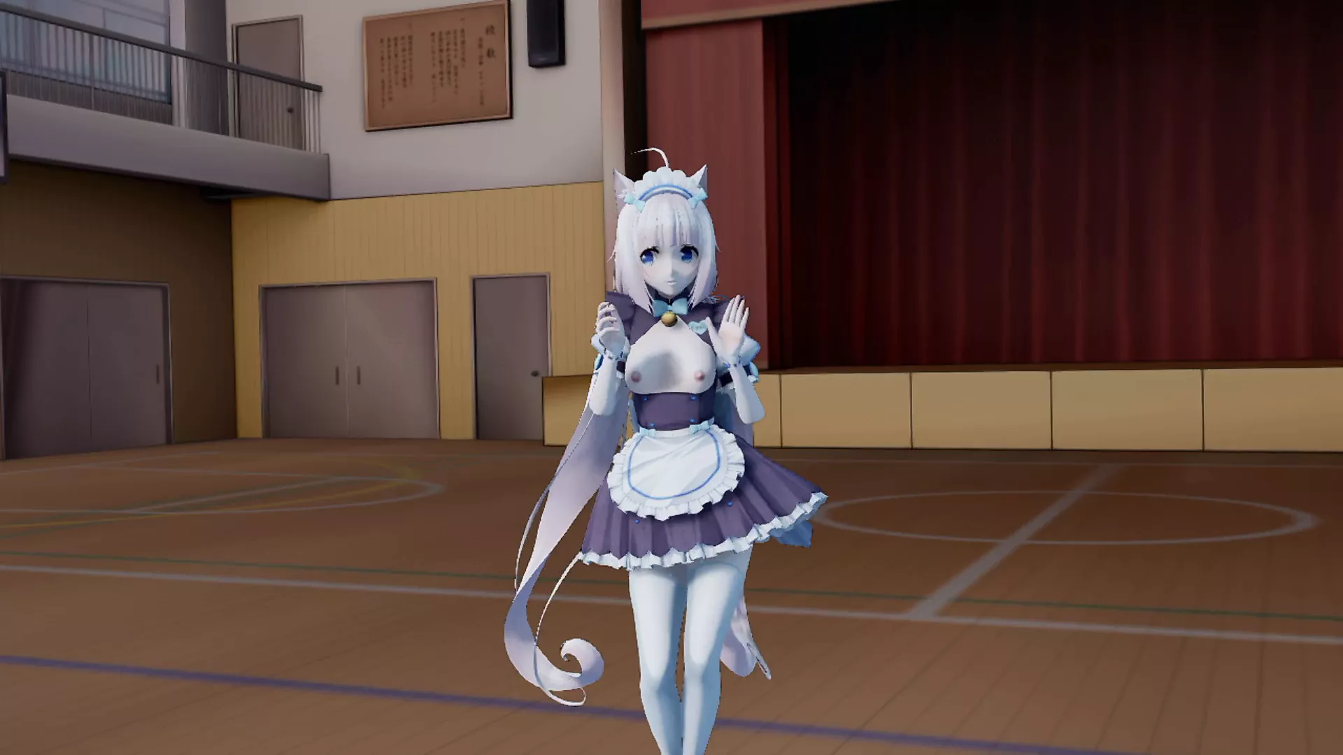 A cute student danced in cosplay with bare breasts, not realizing that her classmate was watching her