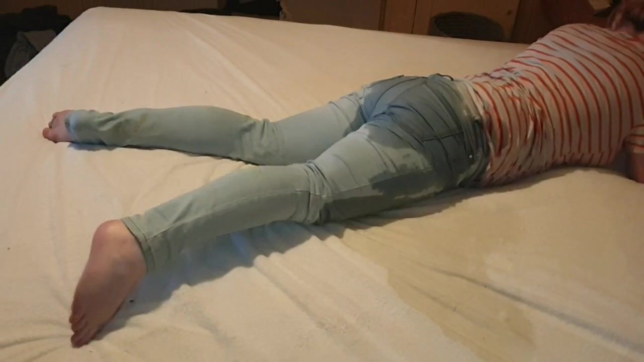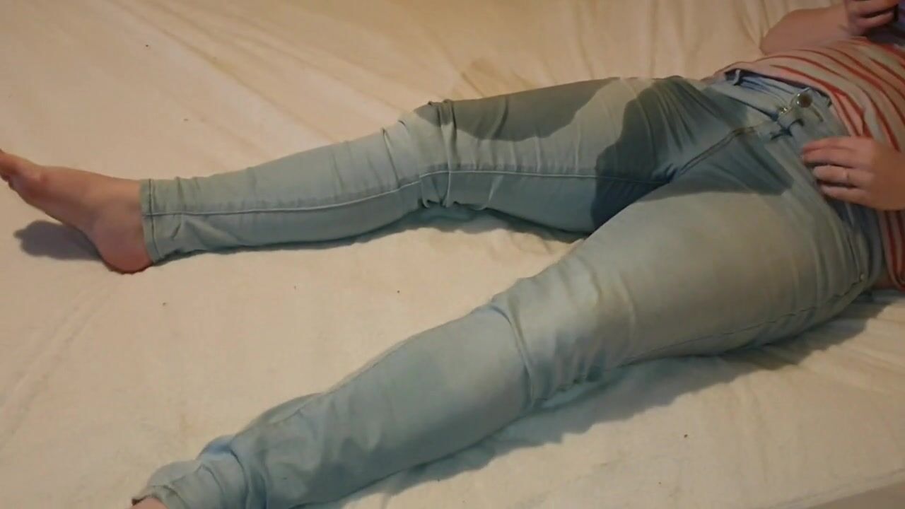 ⭐ Adorable Girl Wets Her Jeans On Her Bed While Playing On Her Phone :3