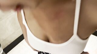 Asian sex in starbucks toilet. Bitch sucks dick while waiting for her coffee
