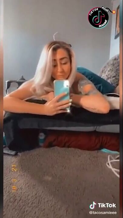 Putita caliente coquetea a la cámara mientras su novio no la ve