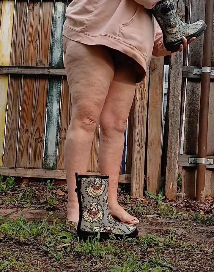 BBW P1SSQUEEN Pisses in her wellies barefoot