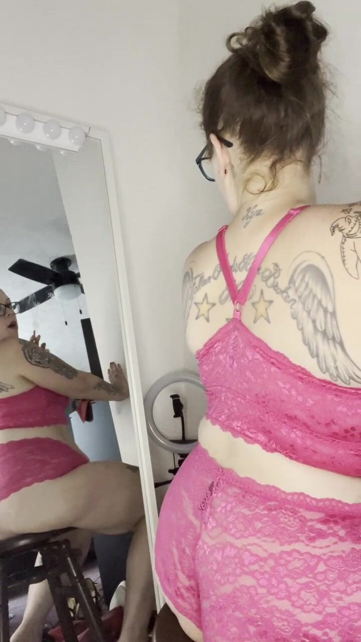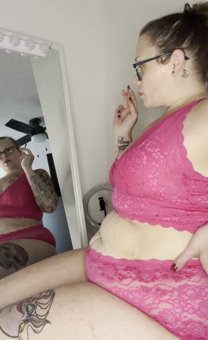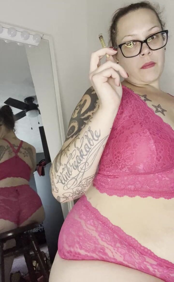 BBW stepmom Milf smoking joint wake and bake in bra and panties from behind POV