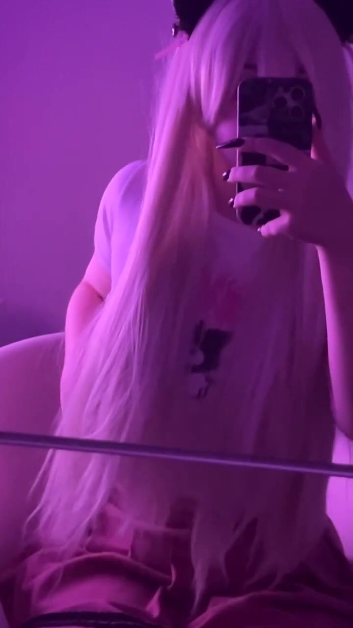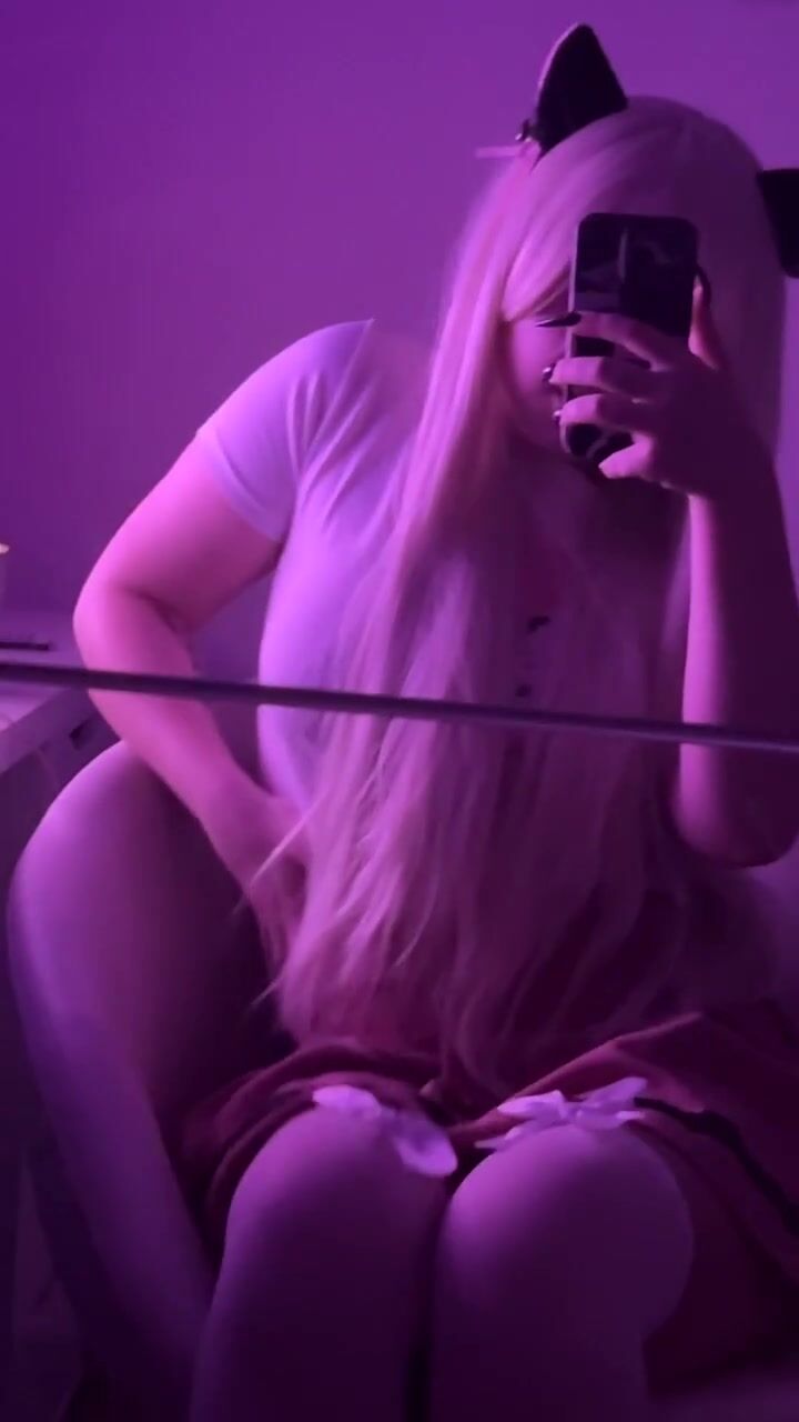 Beautiful cat-girl stroking herself on her body