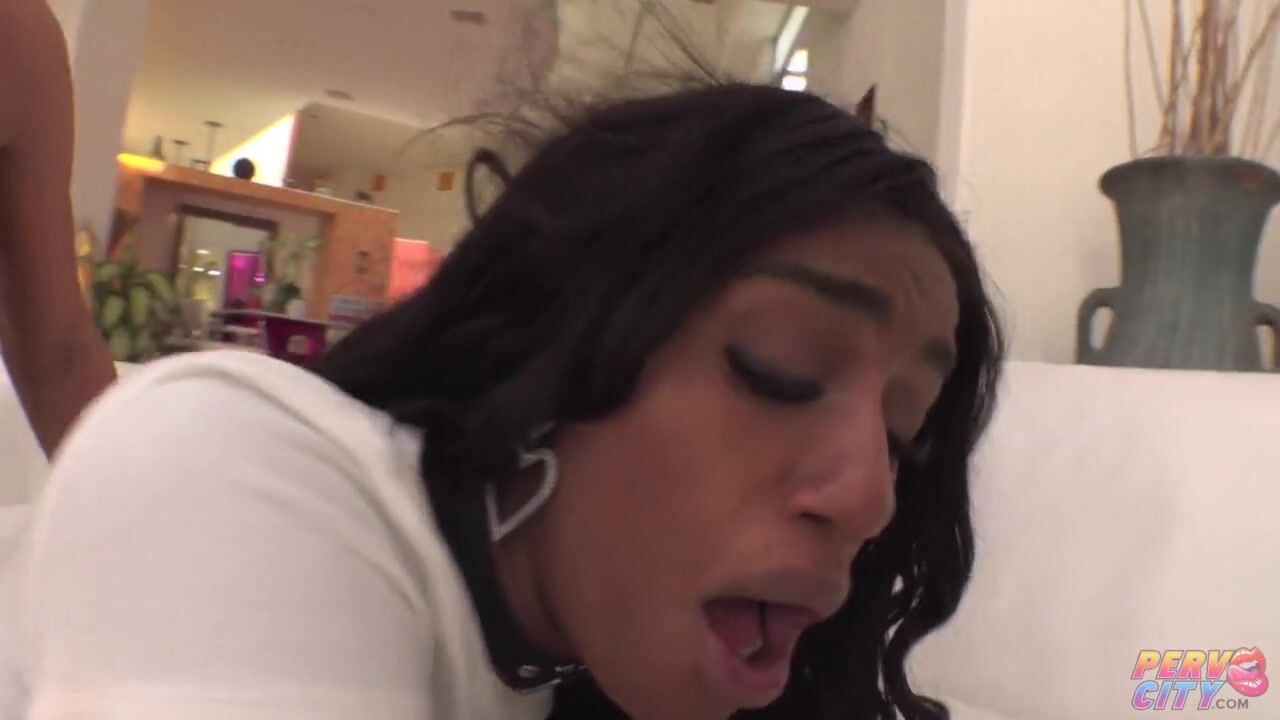 Schoolgirl tranny fucks classmate with tattooed dick! ANAL gapes, Cum covered ass