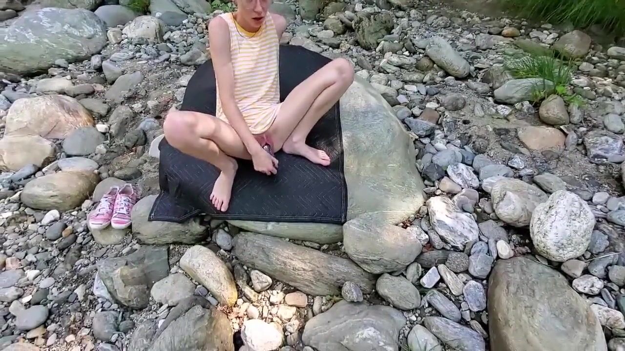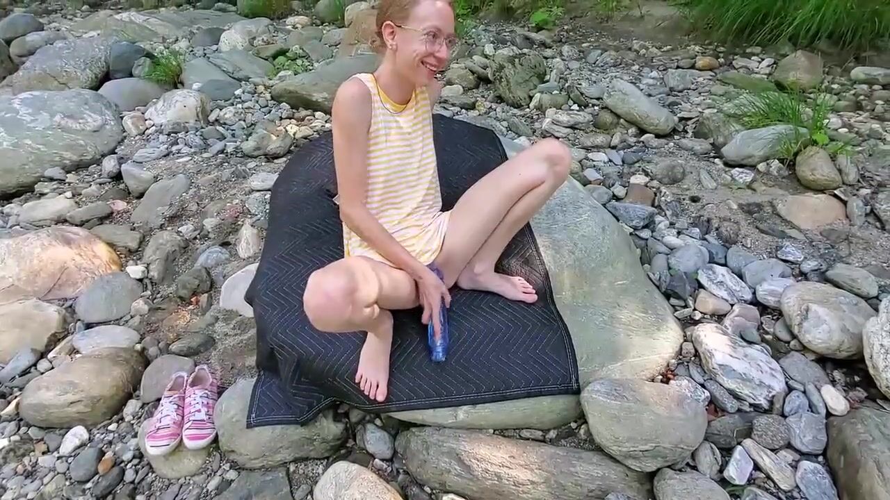 Beautiful OnlyFans Teen Sarah Evans Fucks a Blue Dildo at Public River. Cum Follow me on Twitter