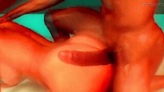 2 Guys 1 Girl Vampire Threesome - HUGE Tits Octokuro Model Double Penetration & An...