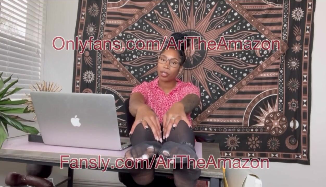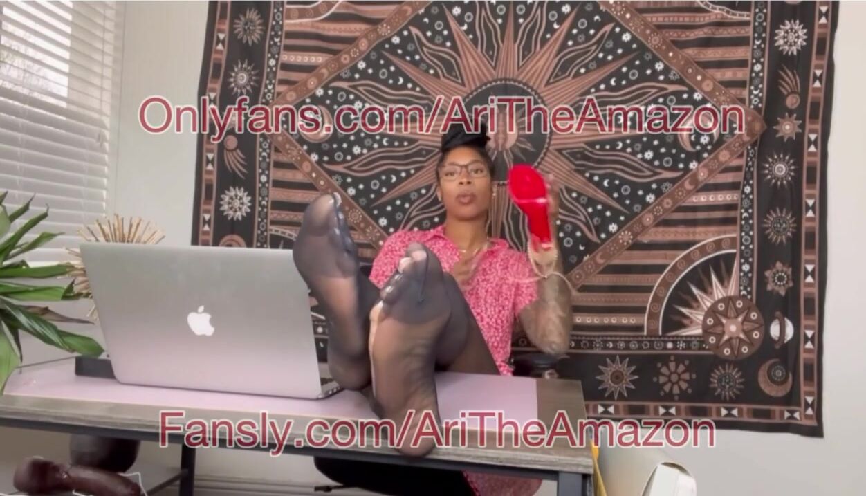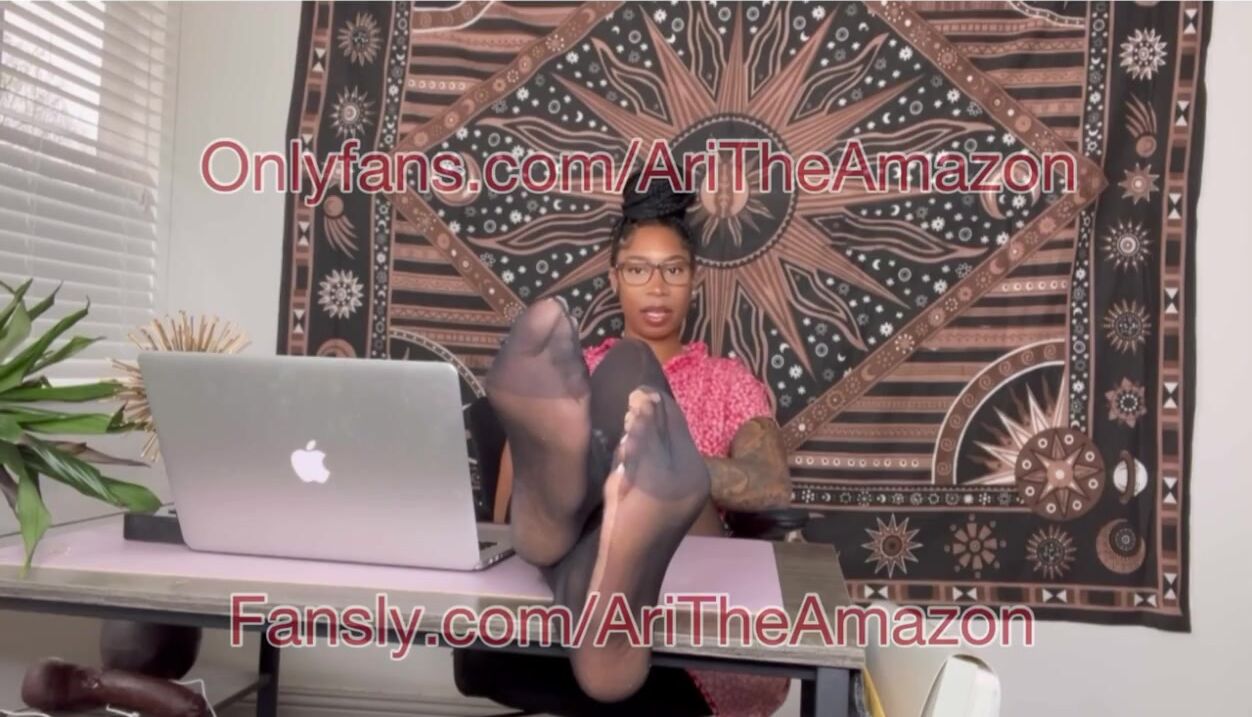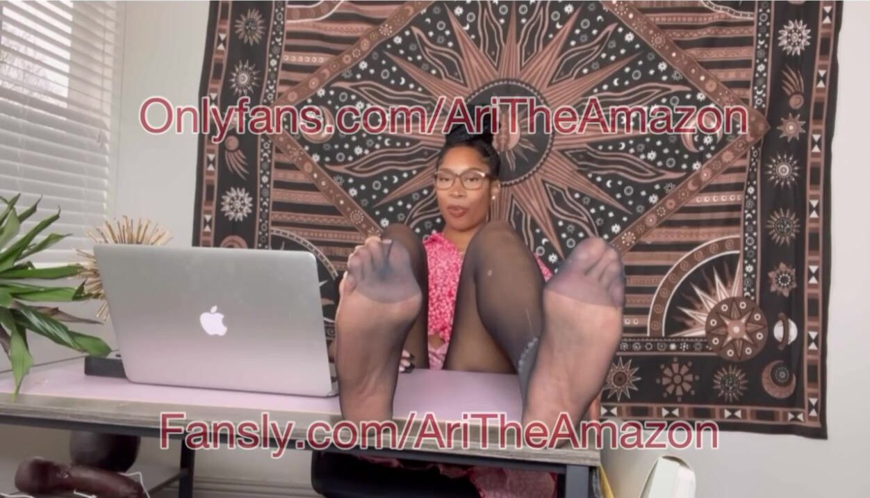 Big feet Ebony boss in nylons with BBC