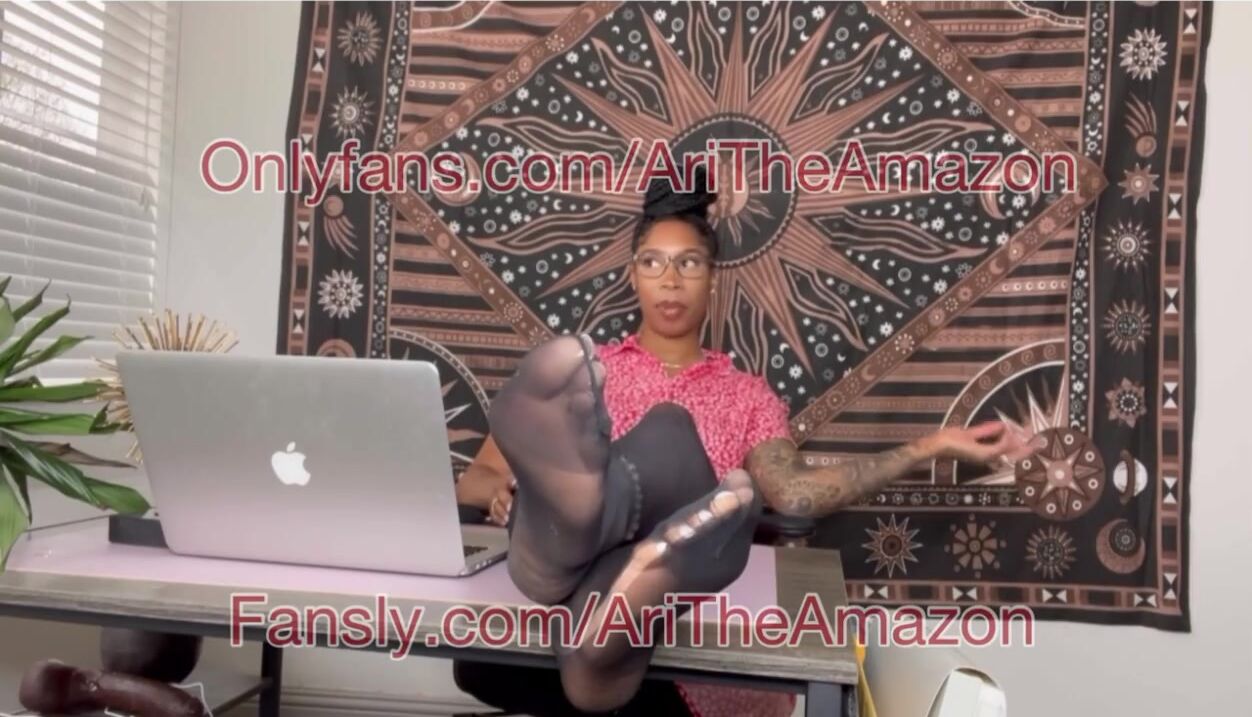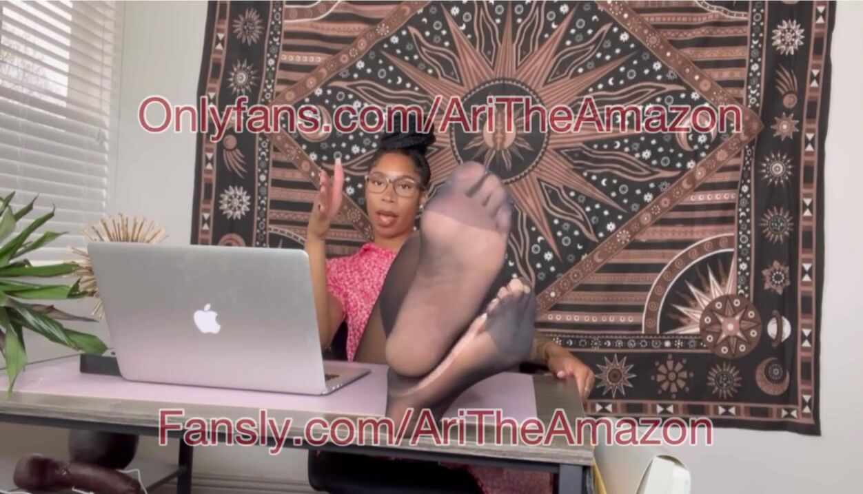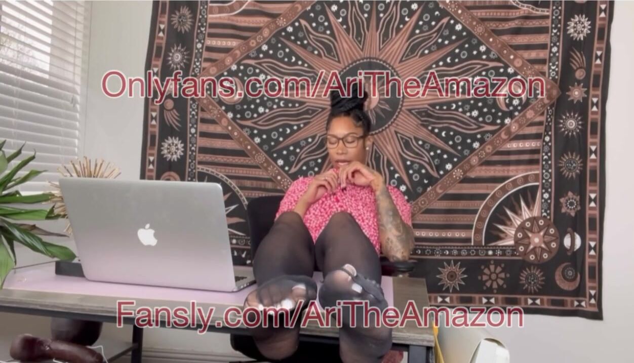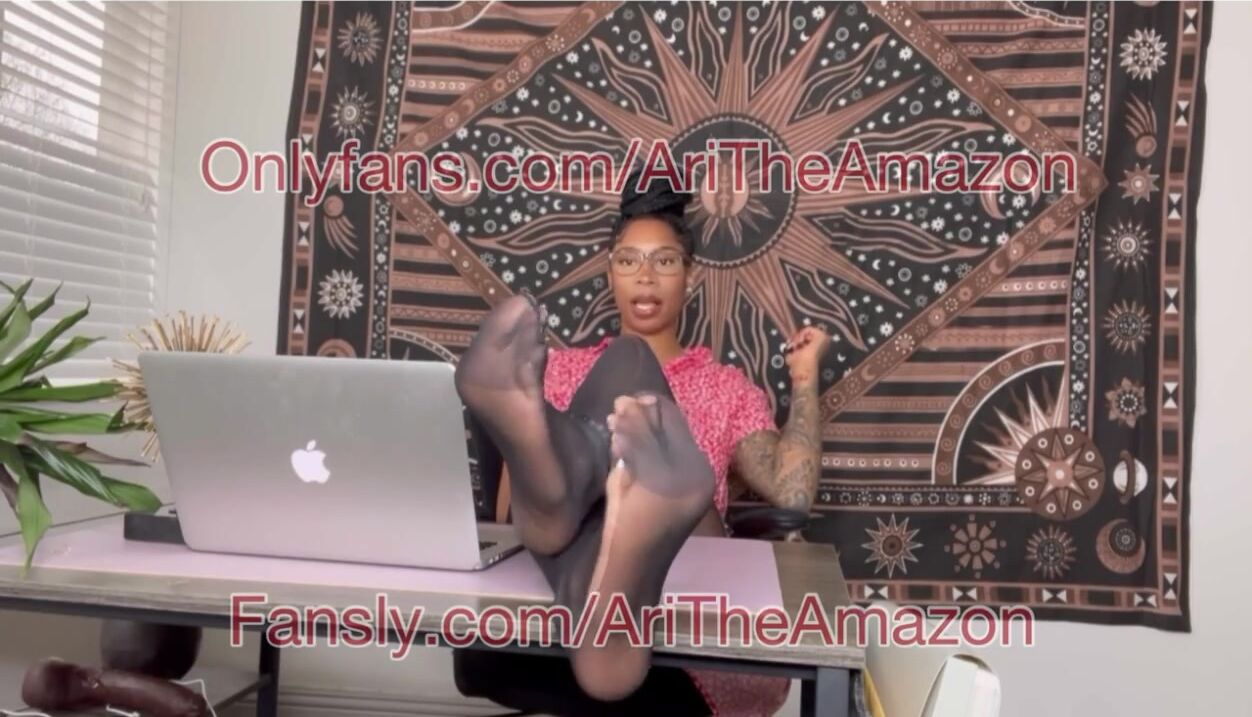 Big feet Ebony boss in nylons with BBC