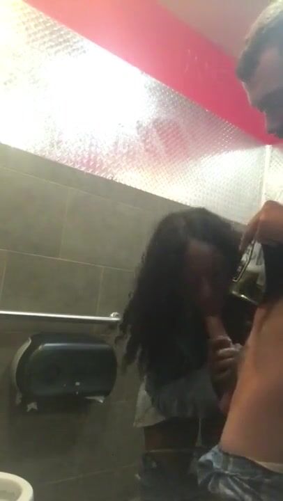 Black girl fucks white cock in club restroom