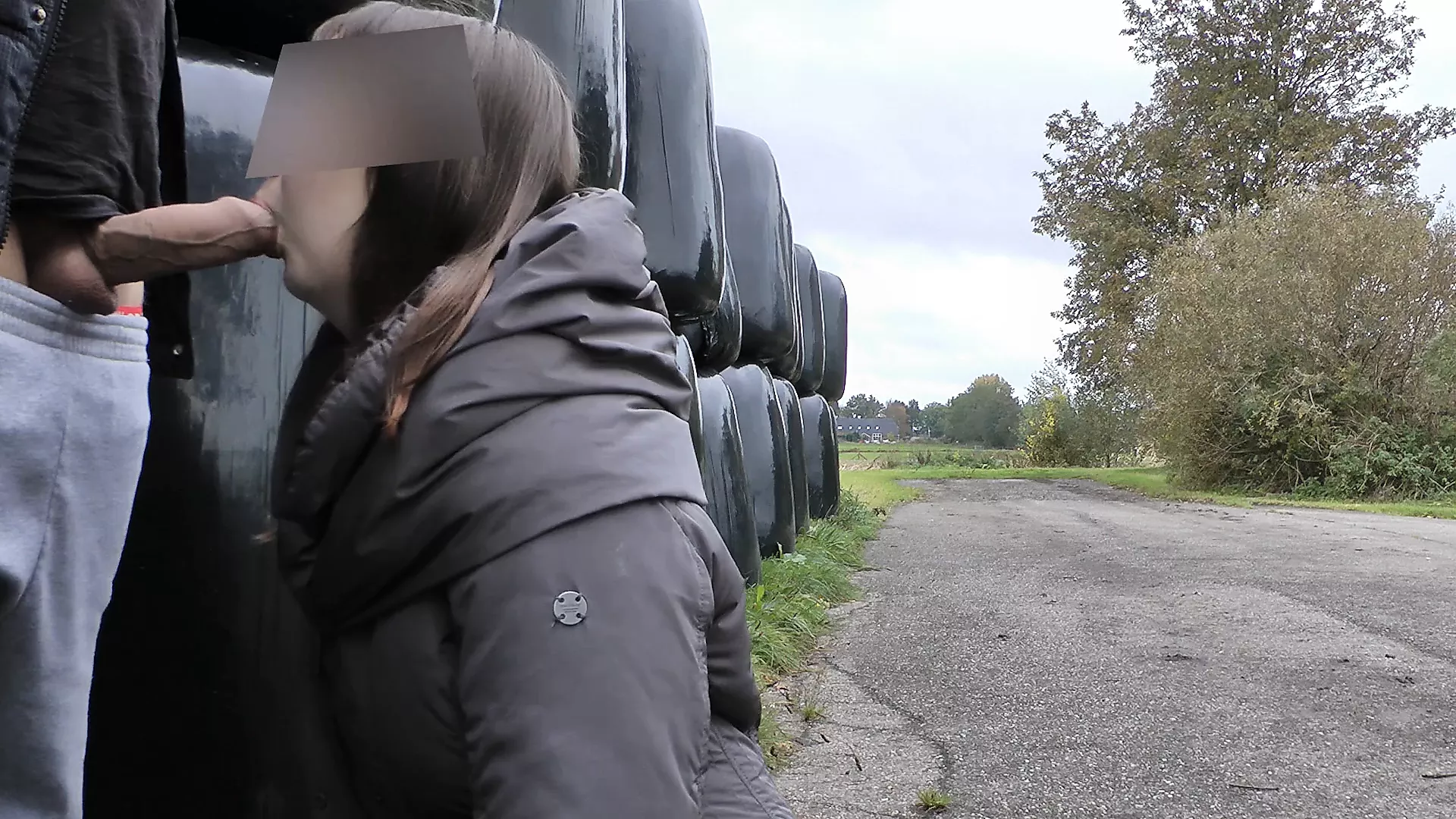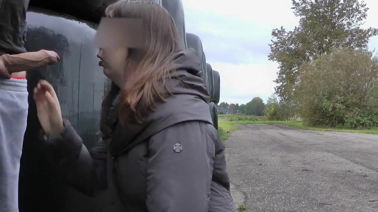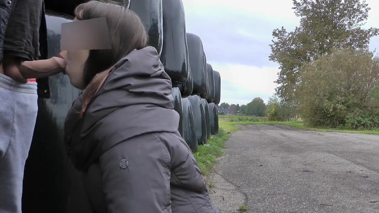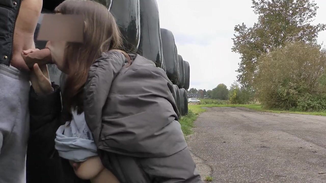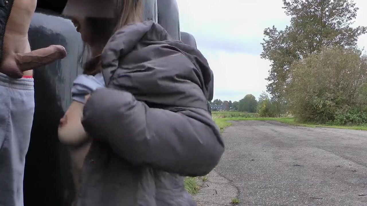 blowjob and facial along the road, cars drive by.