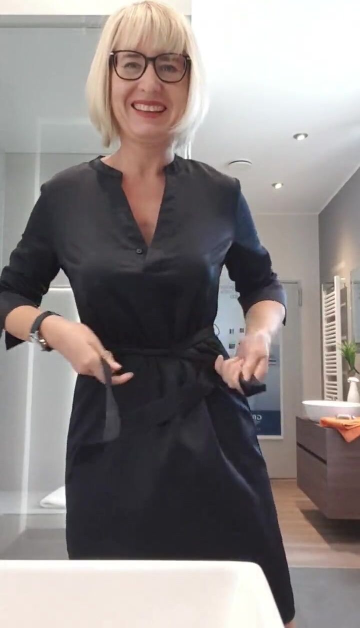 Voluptuous MILF Jane From the UK Looks Delicious in a Black Latex Dress and Tights