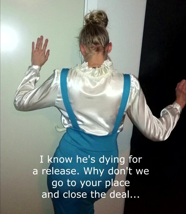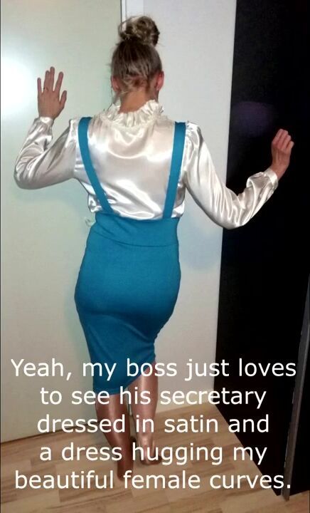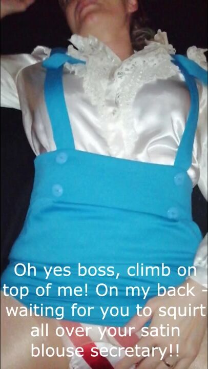 Boss cums on satin blouse secretary