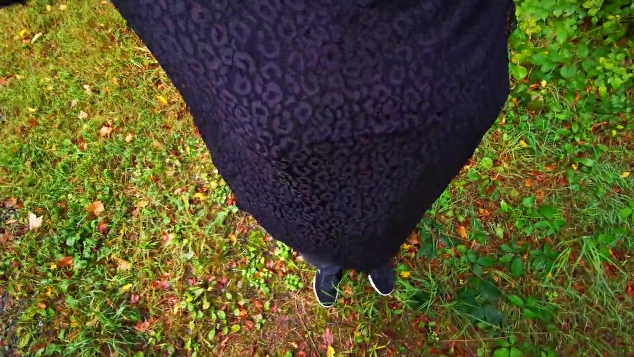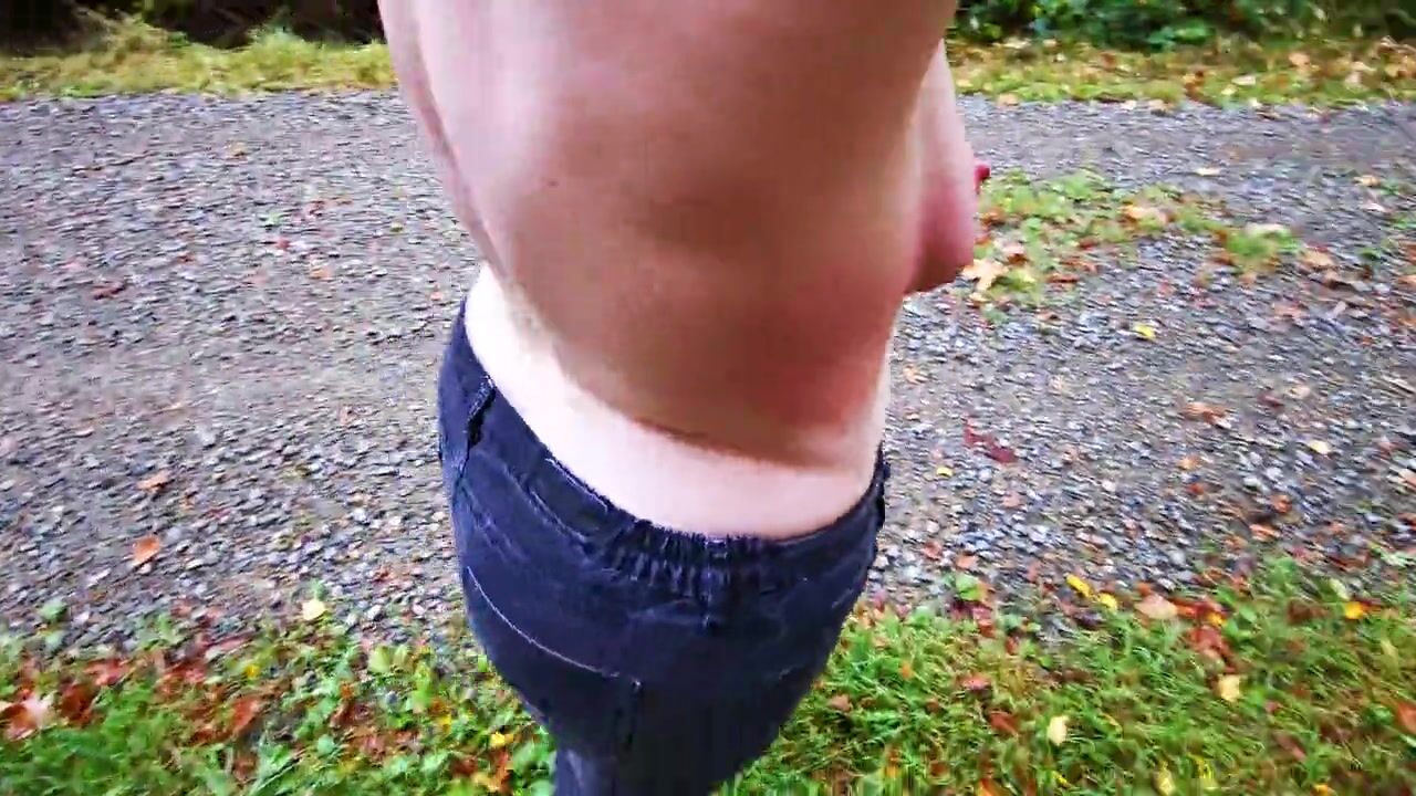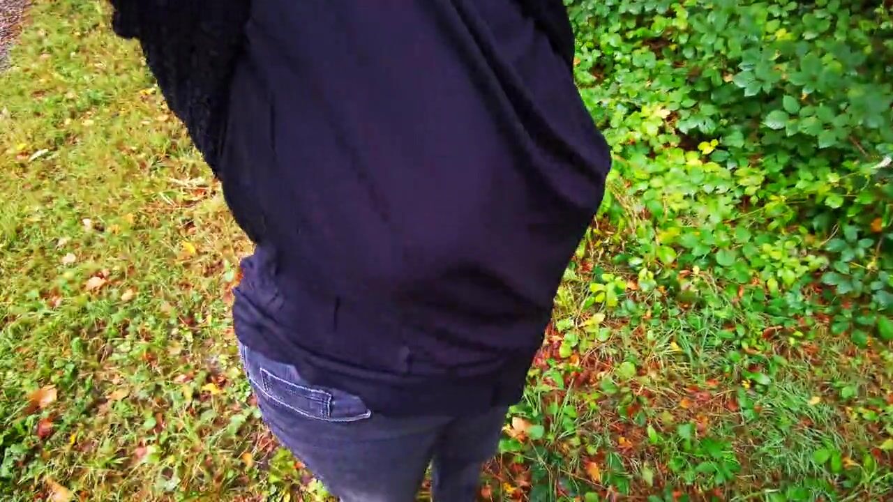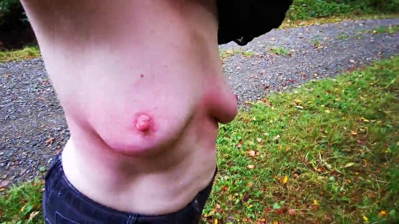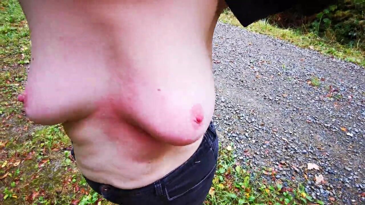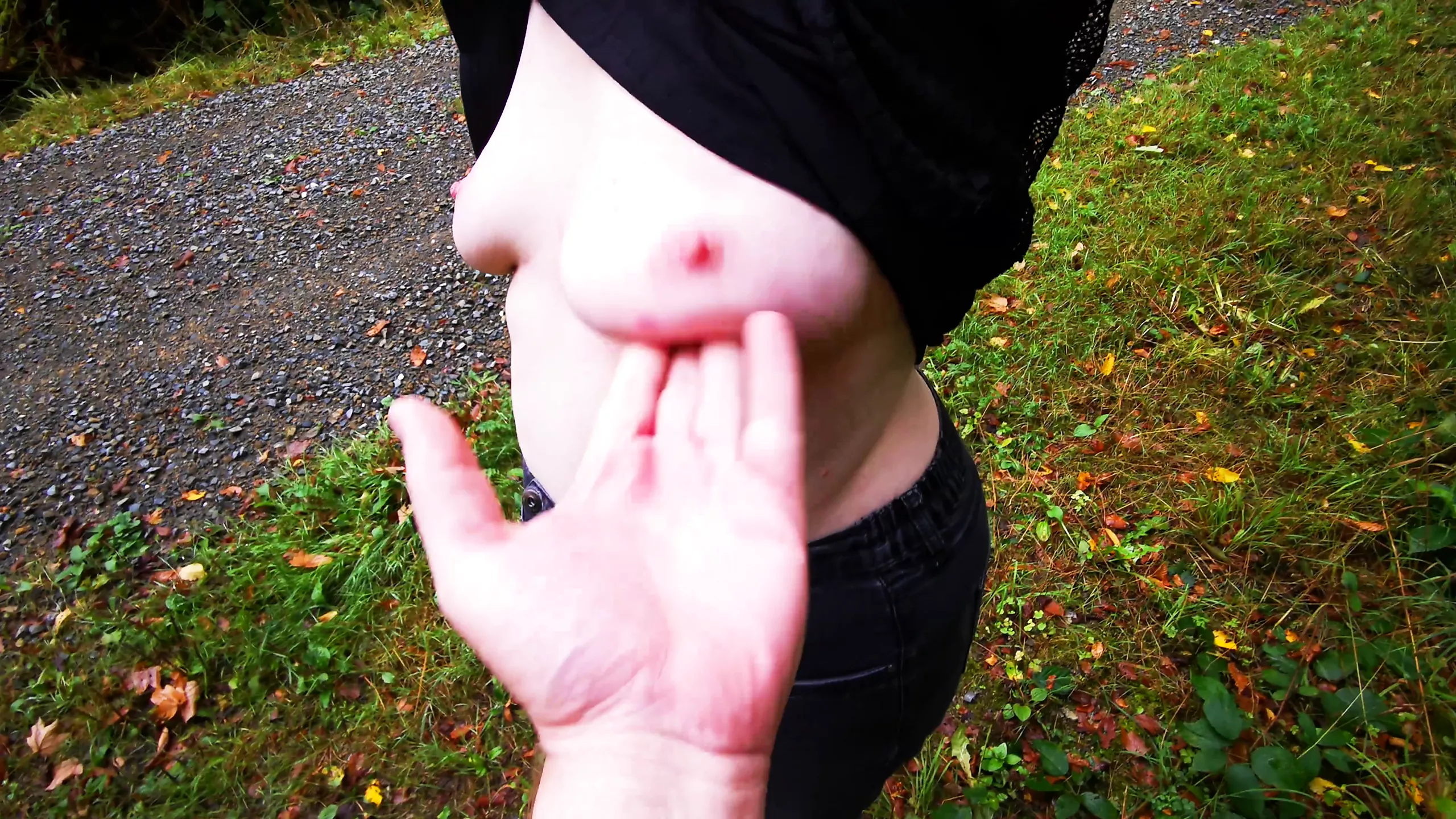 Breast spanking in black outfit in public