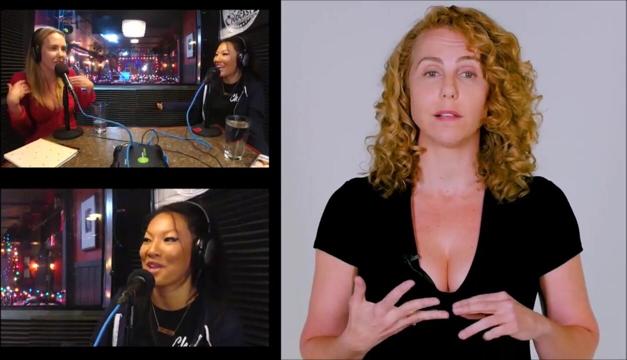 Bree Daniels caresses her body while sliding down her gstring