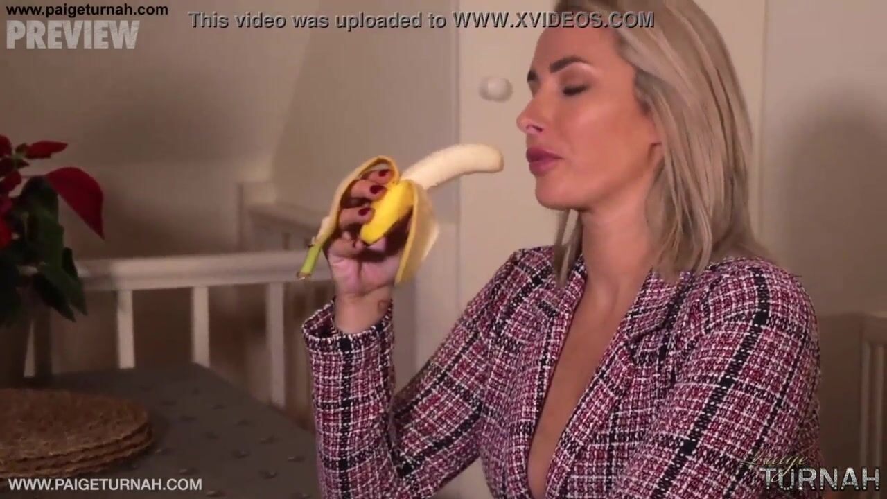 British Babe Paige Turnah is on her lunch break and teasing you with her banana blowjob and pussy strokes