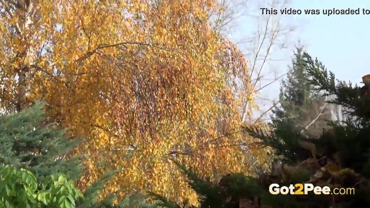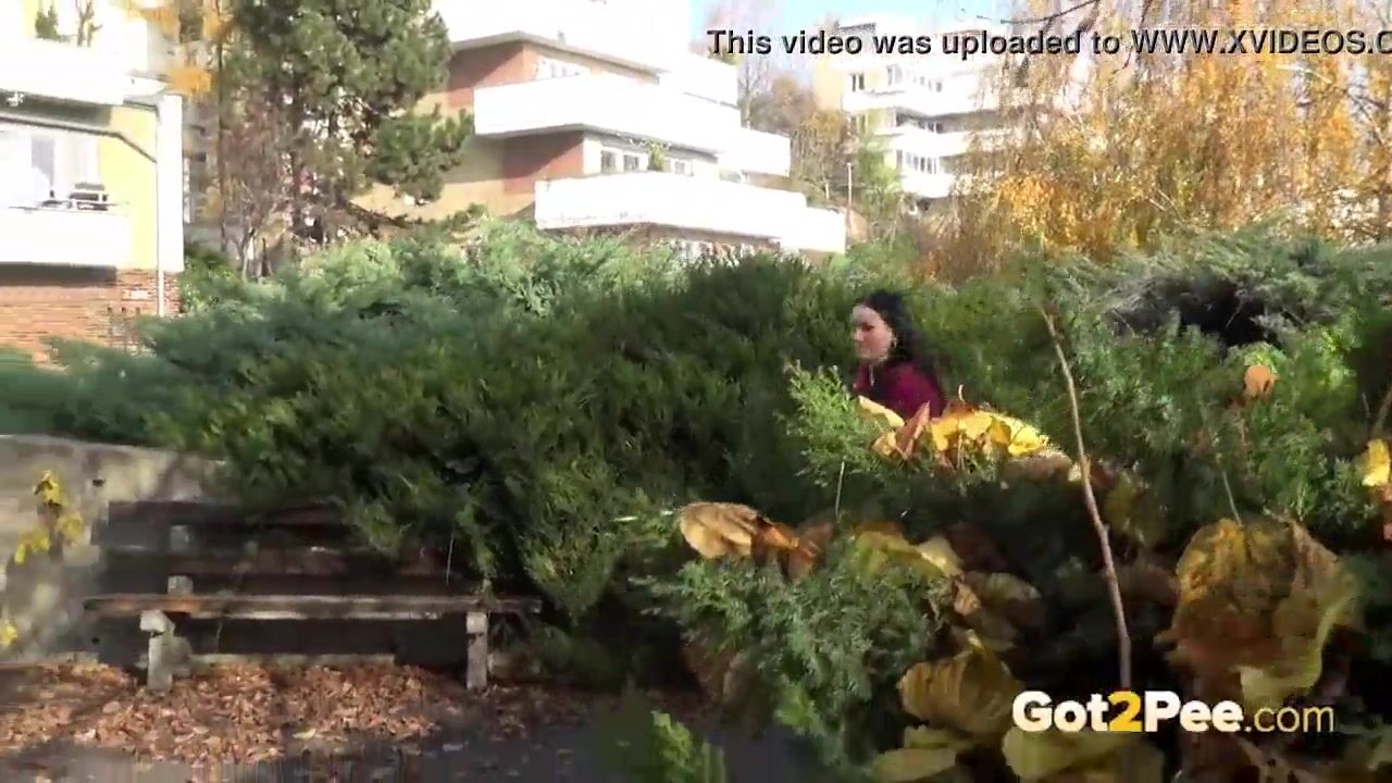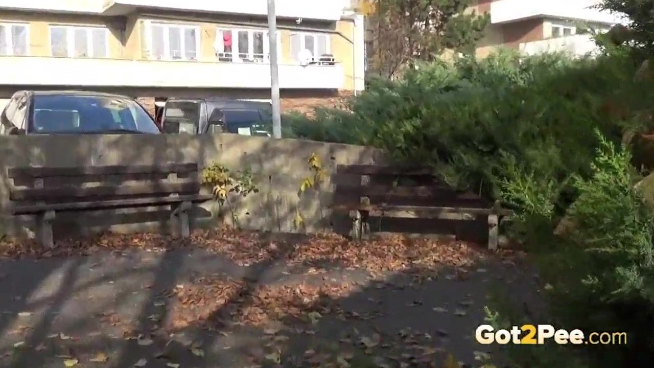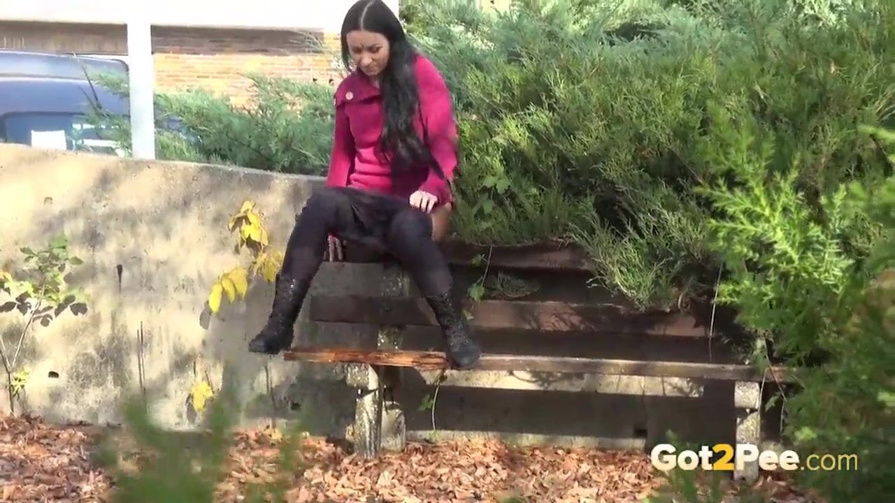 Brunette Hottie Takes Huge Long Piss On Bench In Public