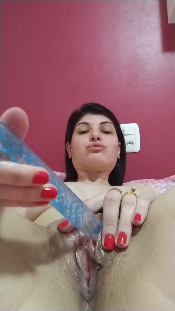 brunette punching toy in pussy