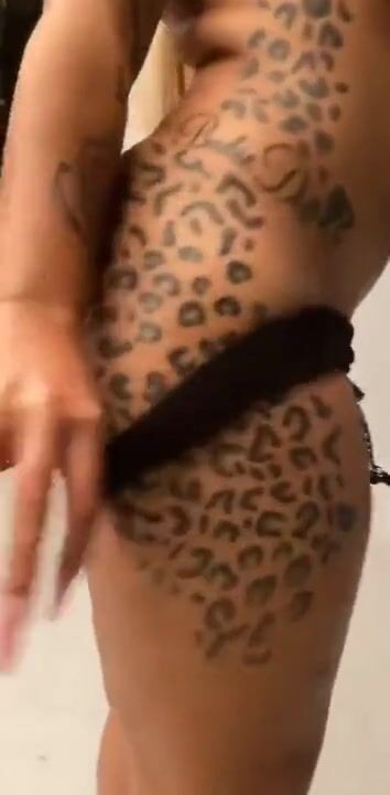 Busty ebony stripping