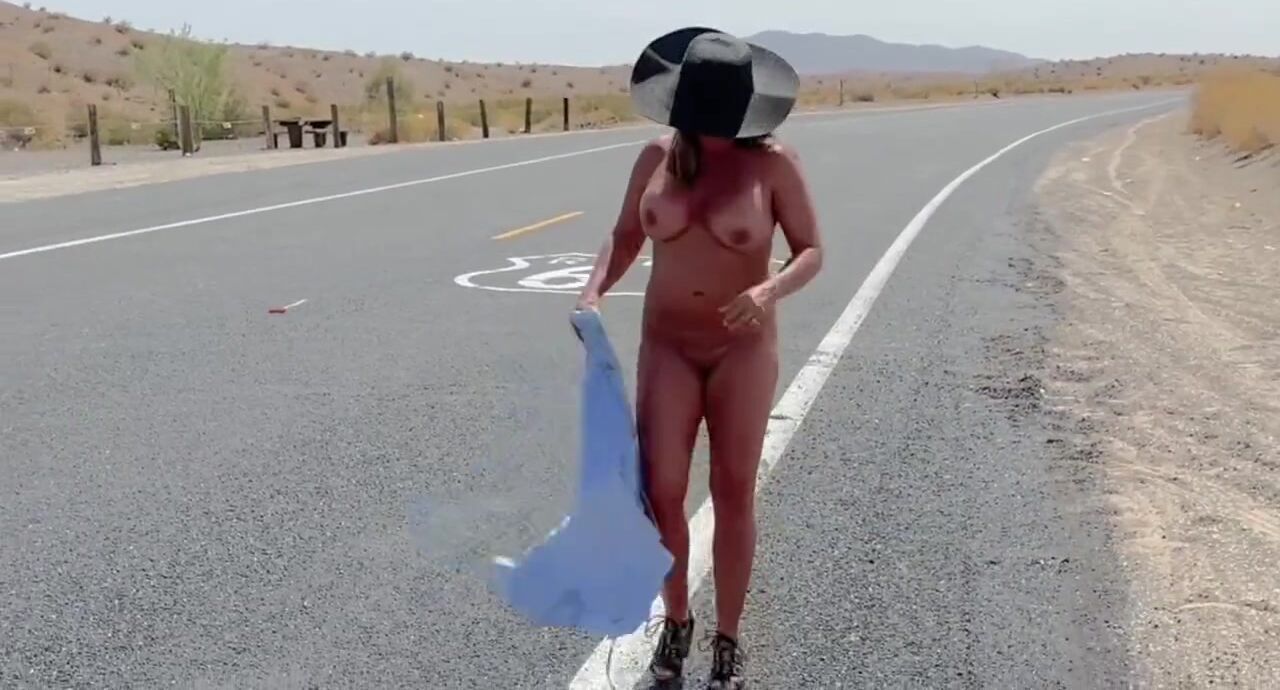 Cait Walks Route 66 Totally Nude