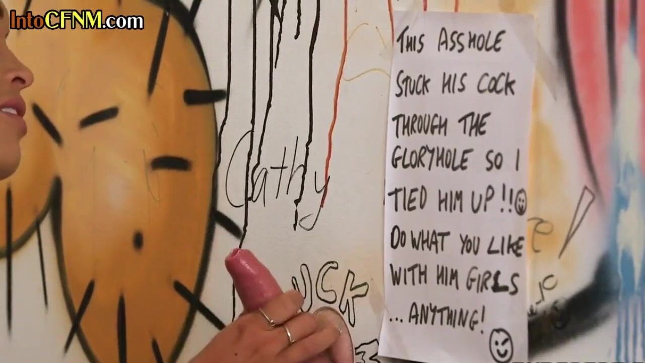 CFNM babe sucking off tiedup gloryhole dick