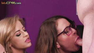CFNM British office femdoms jerk n suck n group till cumshot