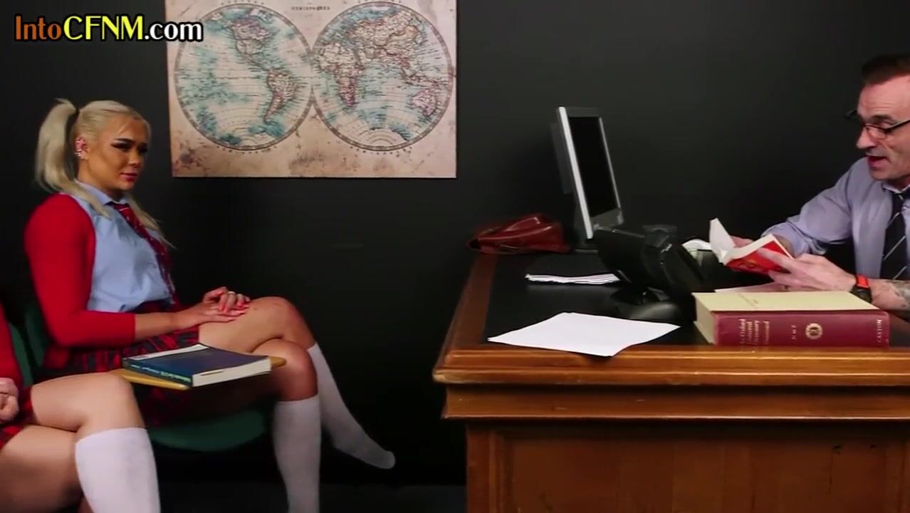 CFNM college babe sucking cock in 3some
