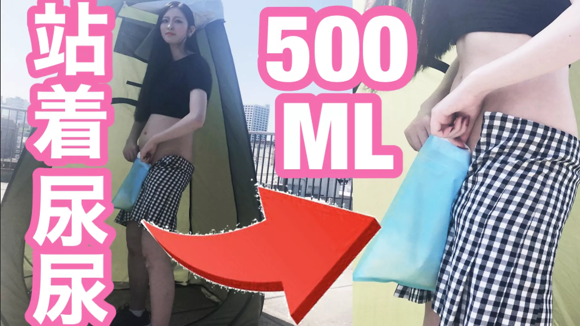 Chinese Subtitle! Jerking off in a large-capacity portable restroom that can be filled with 500ml of pee!