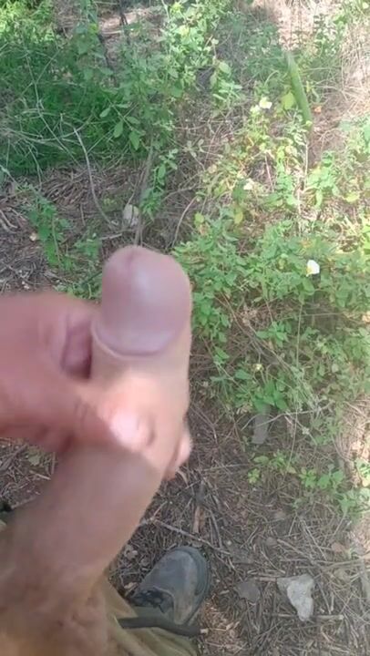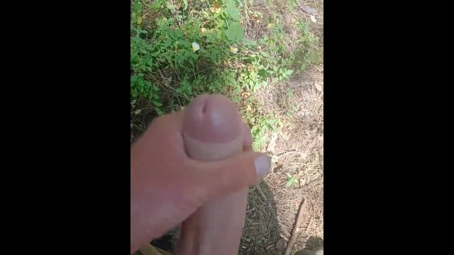 close up big dick wanking in the woods