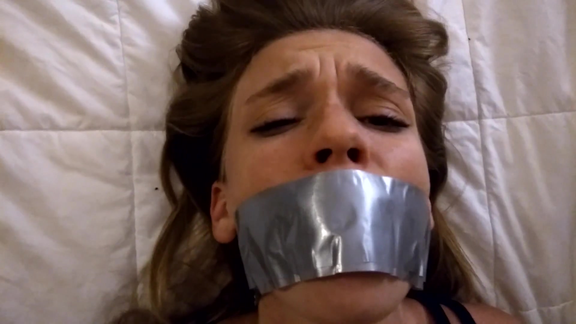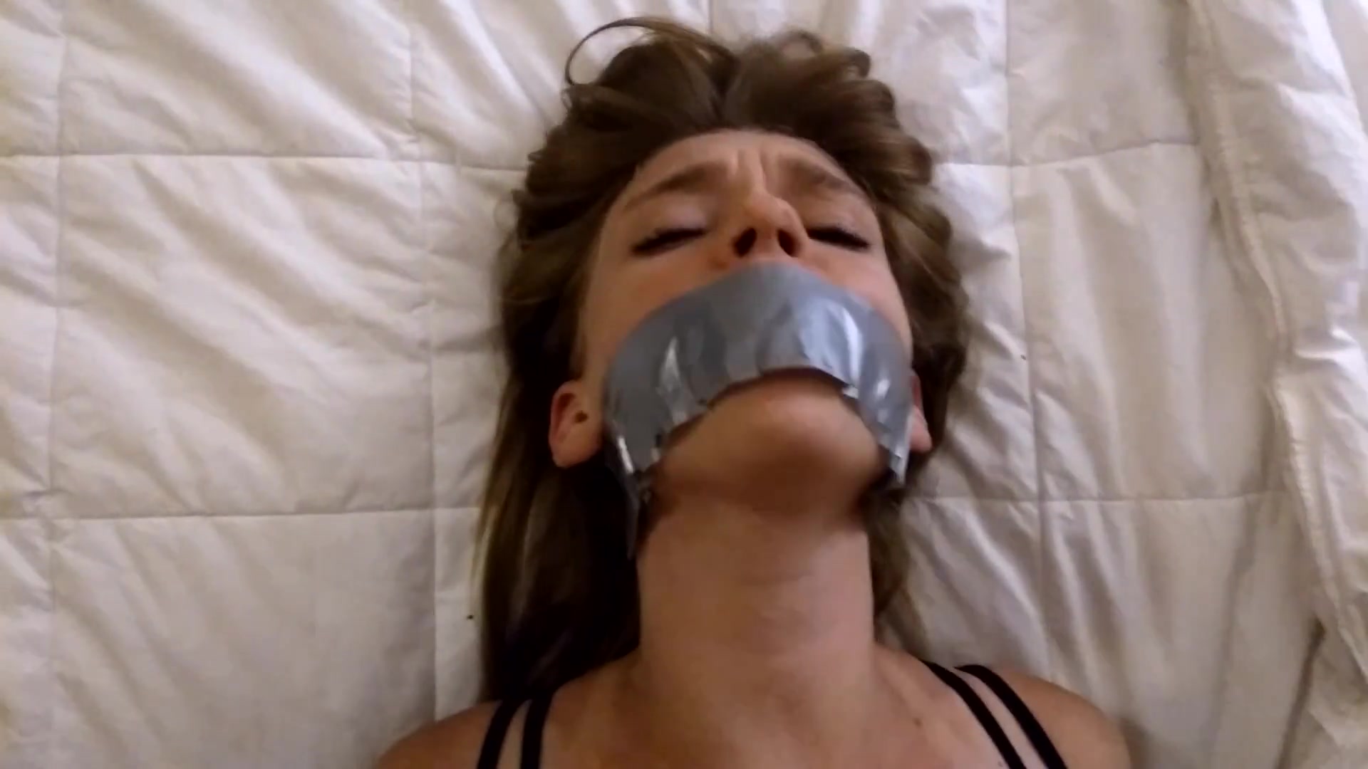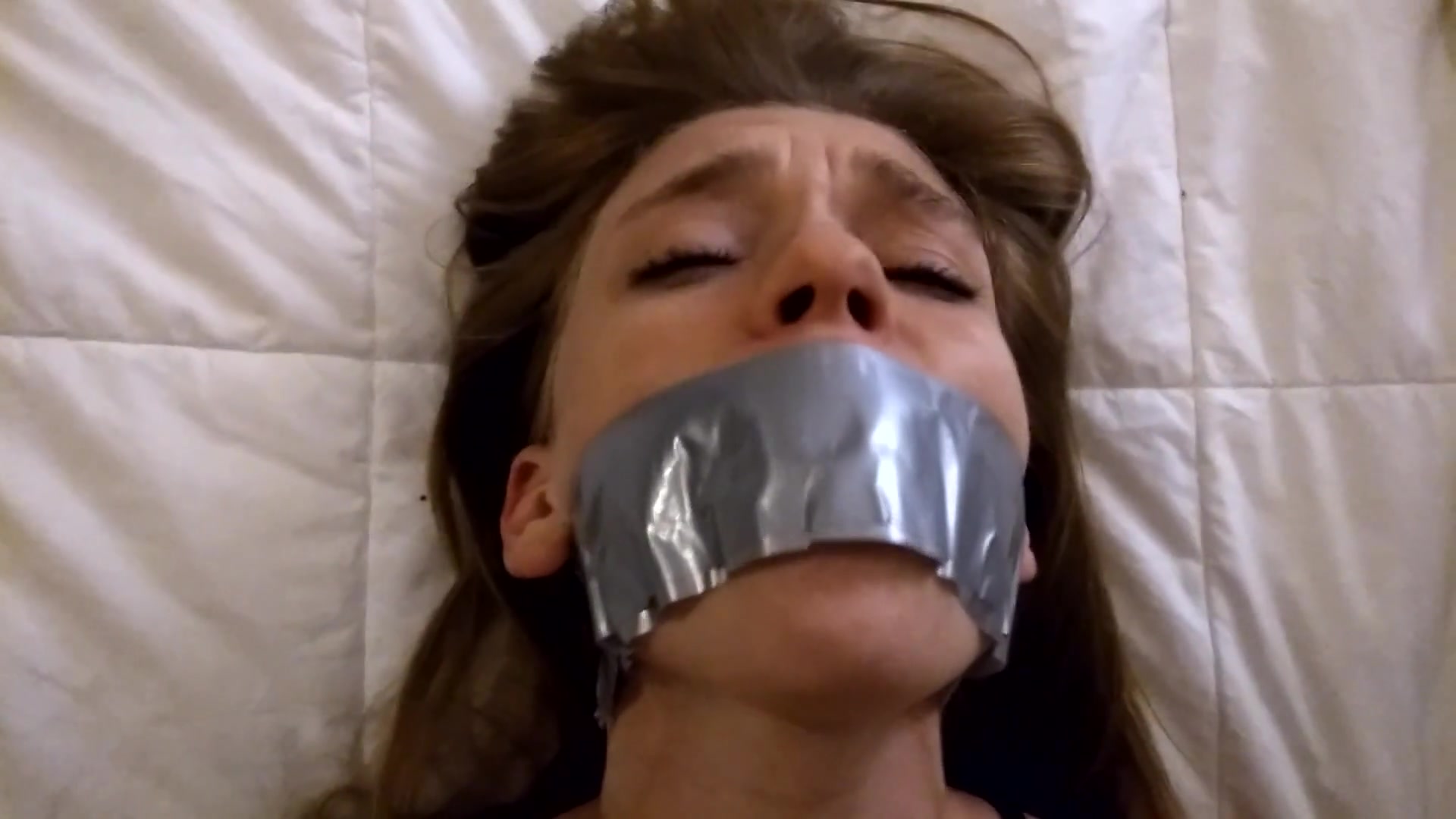 Close up on Face Duct Tape Bondage Struggling and Moaning