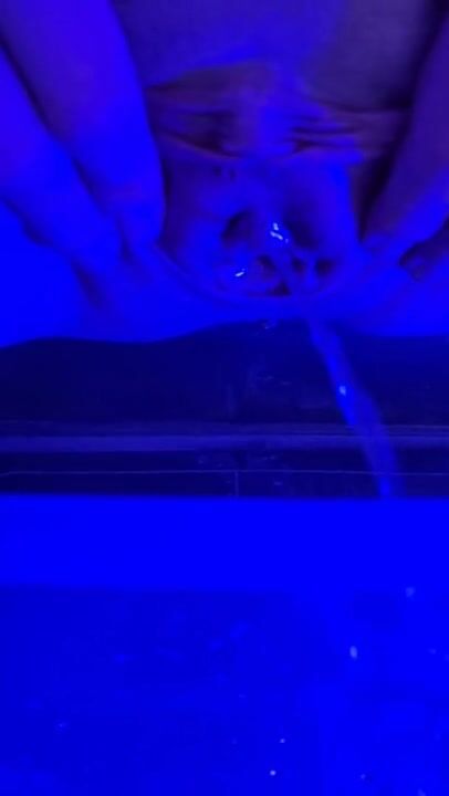 Close up pussy pissing, pee hole seduction in the blue light