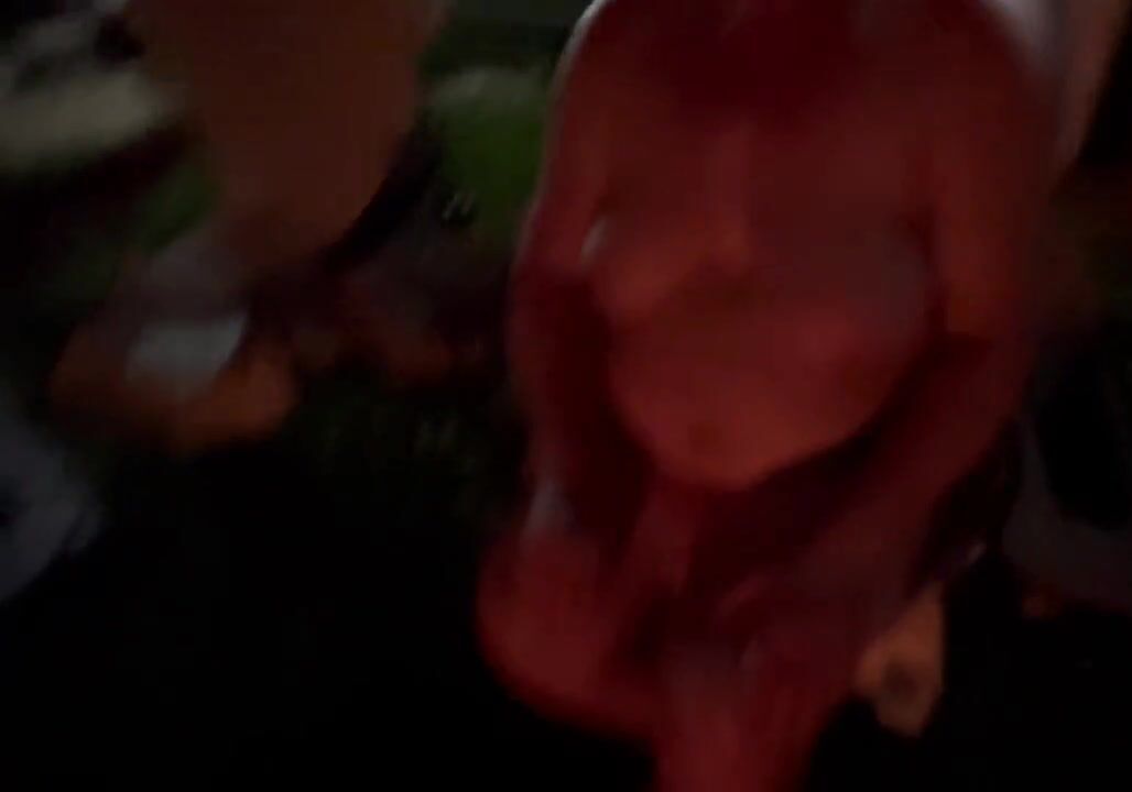 Cock sucking by the fire pit