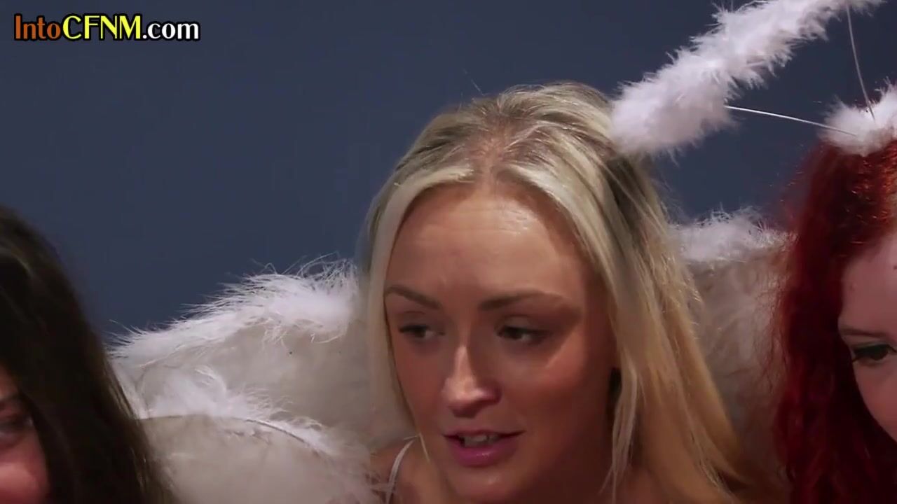 Costumed femdom chicks group sucking bigcock