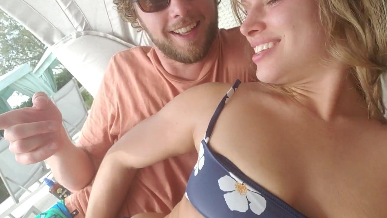 Creampied in her during risky public outdoor sex at sunny resort