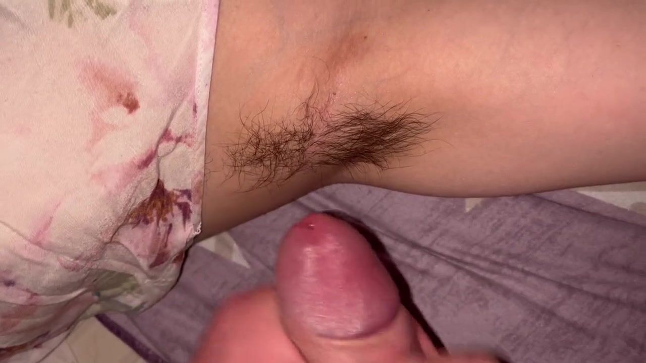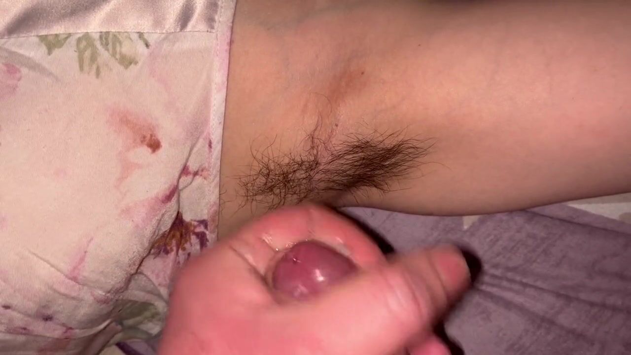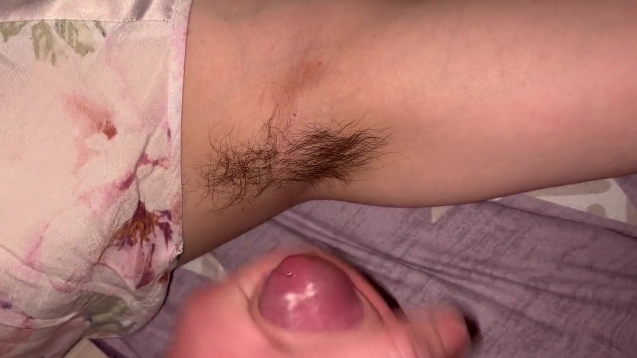 Cumshot on hairy armpits