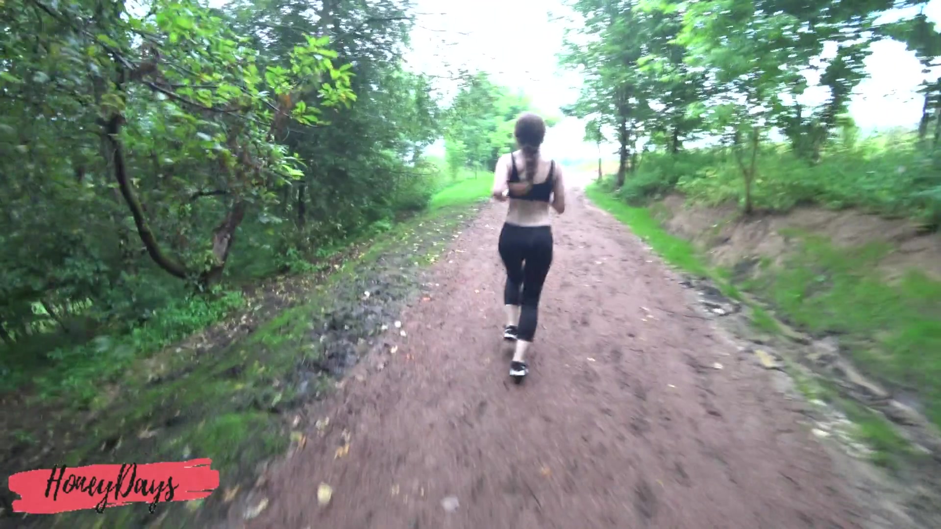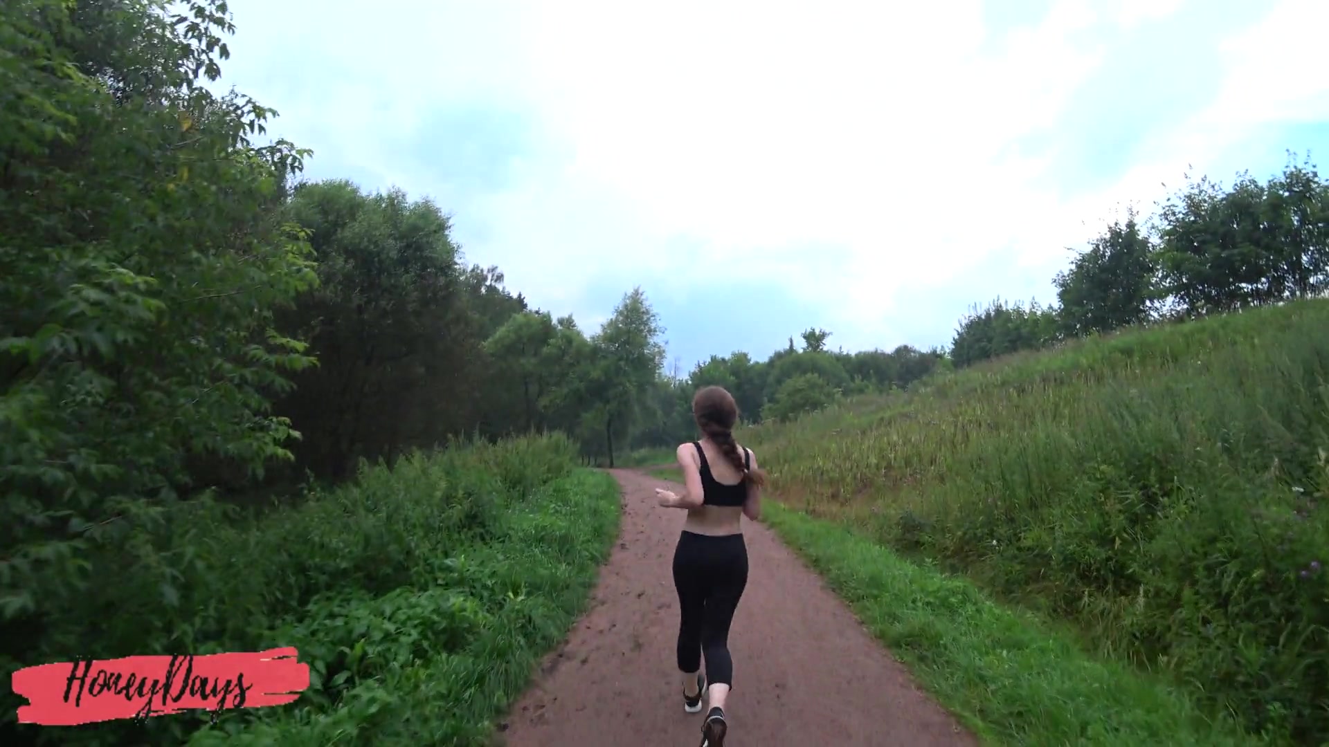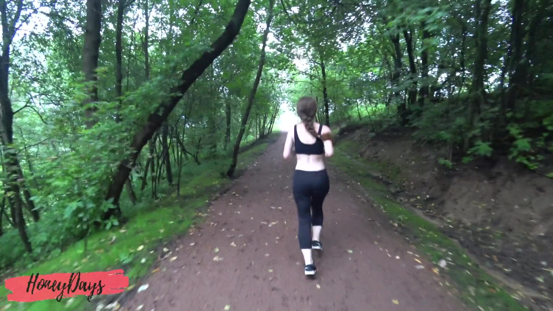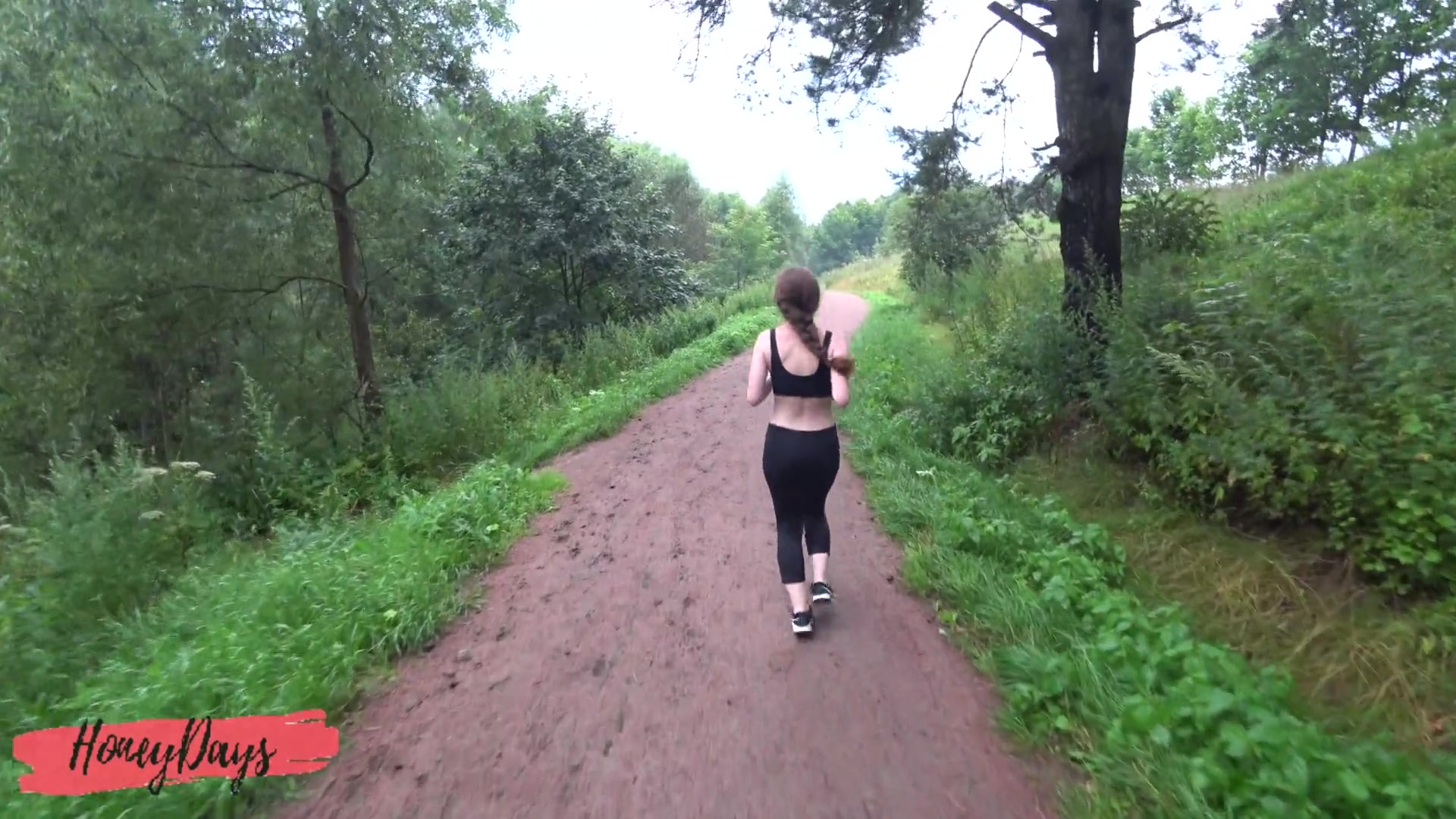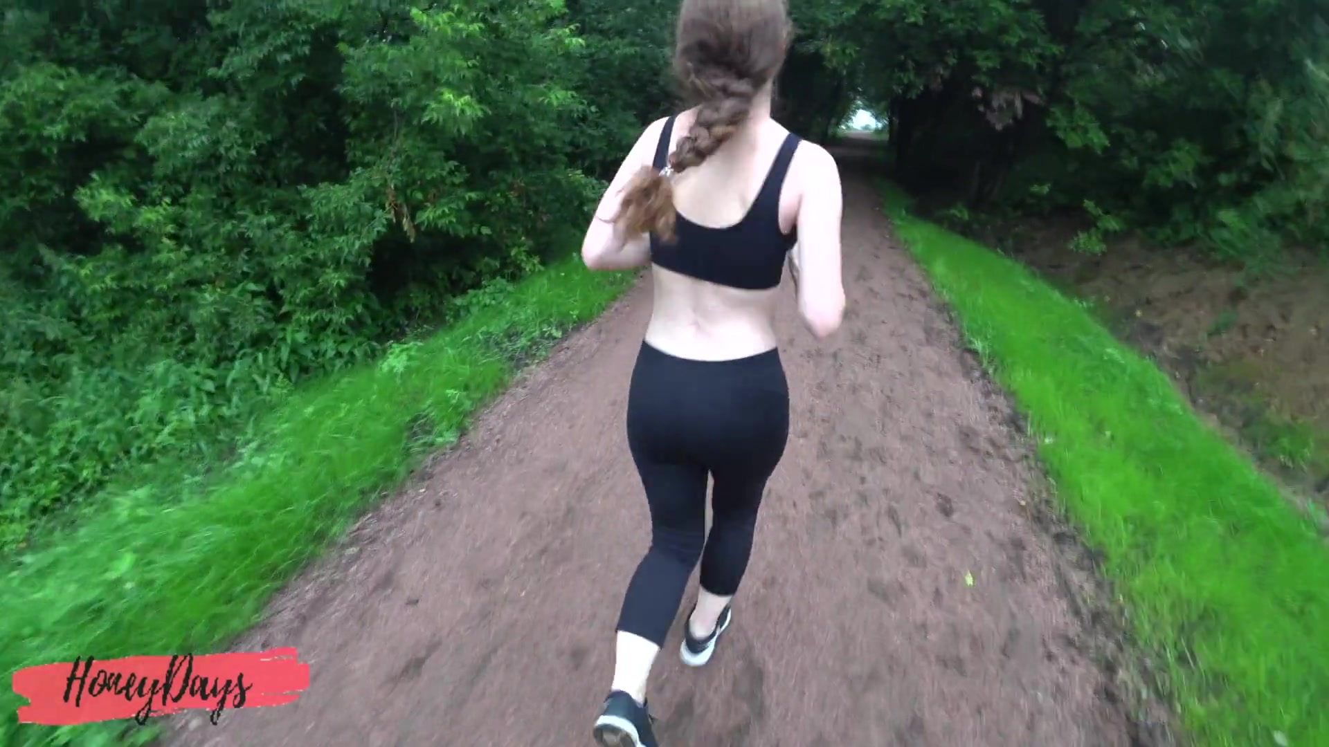 Cumshot on Leggings of Athletic Beauty after Jogging