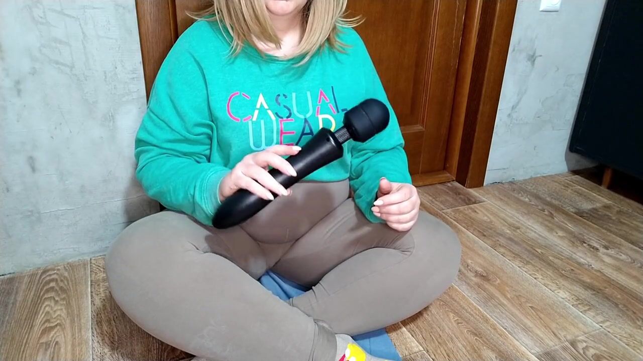 Curvy MILF in leggings pissed with pleasure