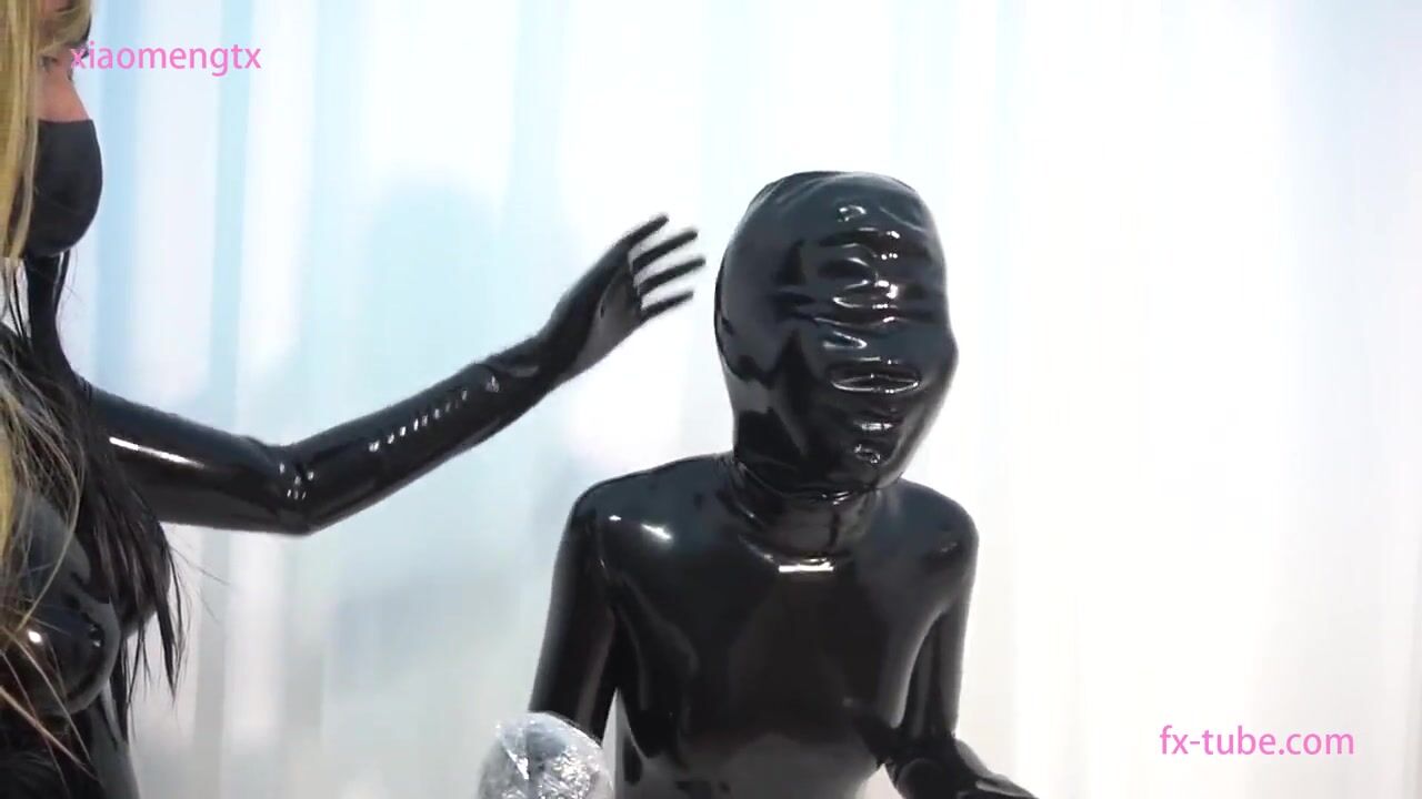 Cute latex girl hood breathplay