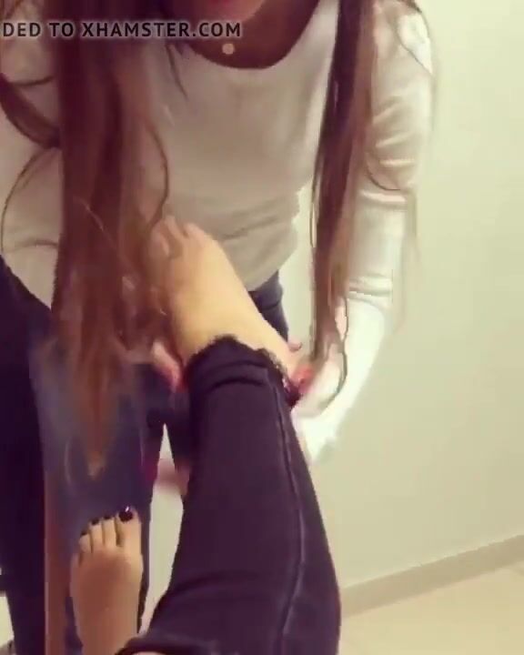 Cutie worships her friend's feet