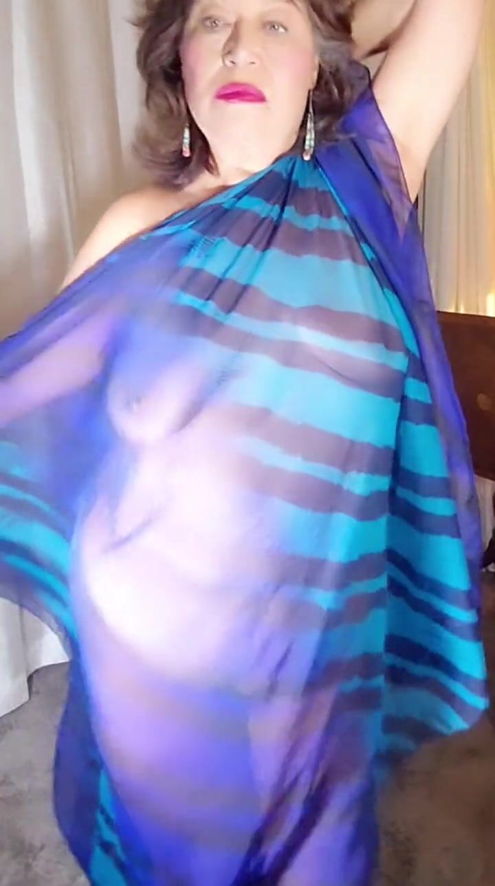 Dancing naked in my transparent scarf. Mature Latina granny with hairy pussy