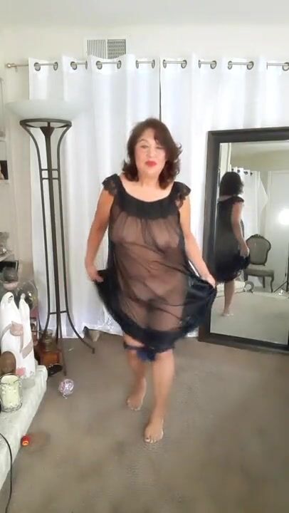 Dancing nude in transparent nightgown. Feel happy with me!