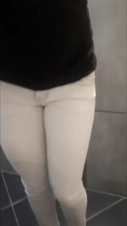Desperate pee in white Jeans and rubbing my wet clit Full video on ModelHub