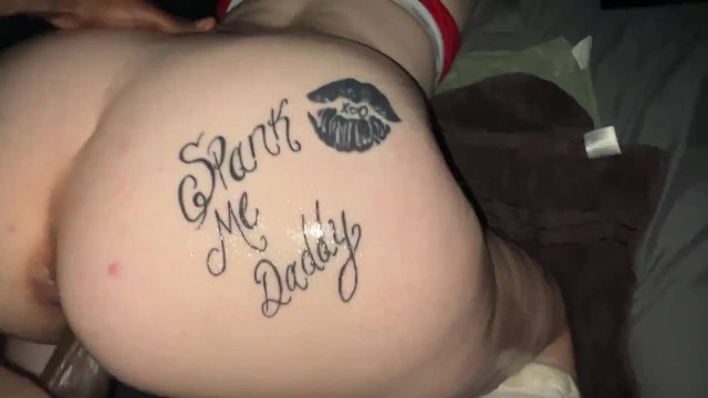 Schoolgirl tranny fucks classmate with tattooed dick! ANAL gapes, Cum covered ass