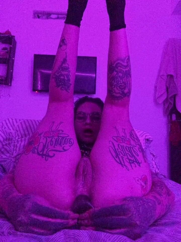 Schoolgirl tranny fucks classmate with tattooed dick! ANAL gapes, Cum covered ass