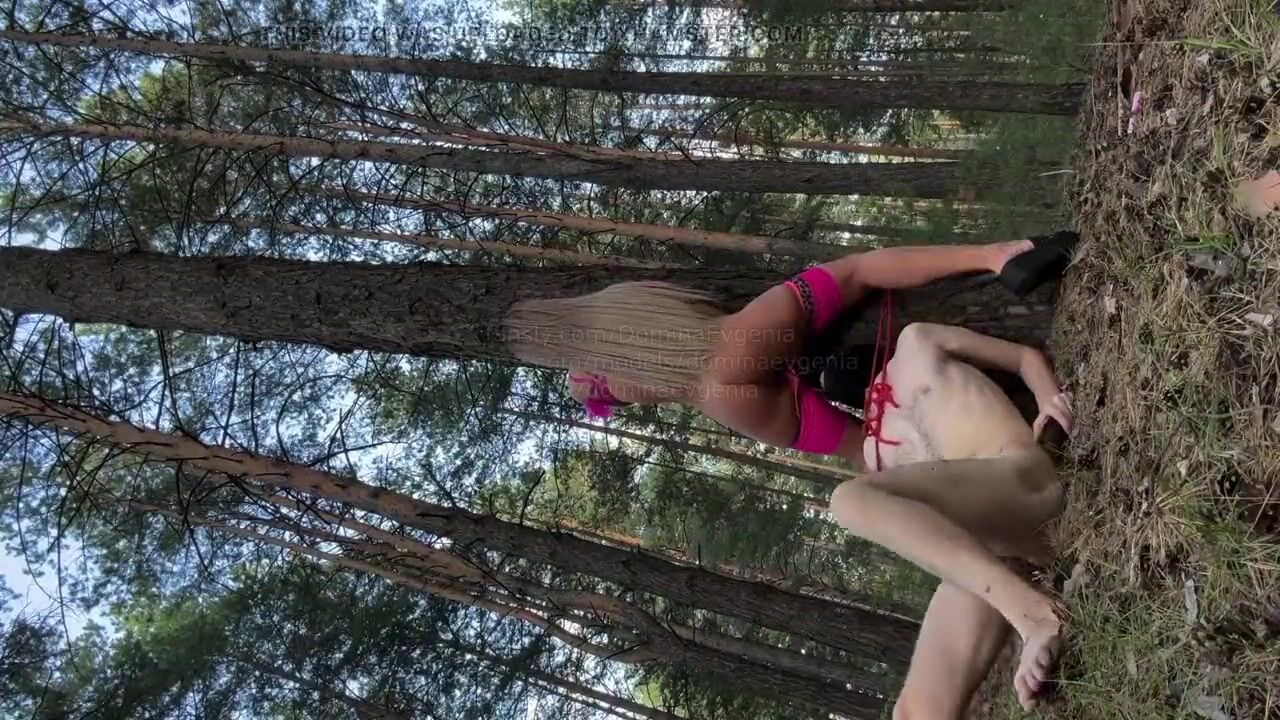Domina Evgenia - I continue to humiliate my slave in the woods